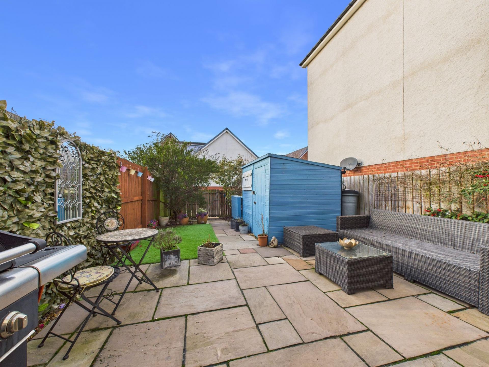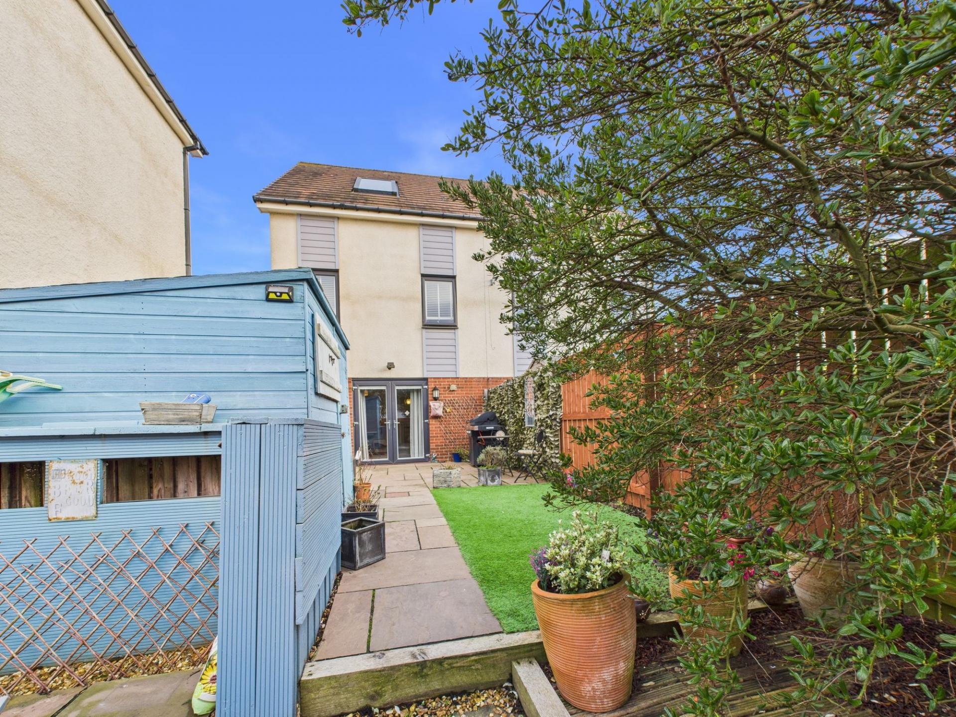 Externally, the property features gardens to both the front and rear. The rear garden is enclosed, west-facing and mainly paved, offering low-maintenance outdoor space with room for several seating areas, making it perfect for outdoor dining, entertaining or simply relaxing in the sunshine.