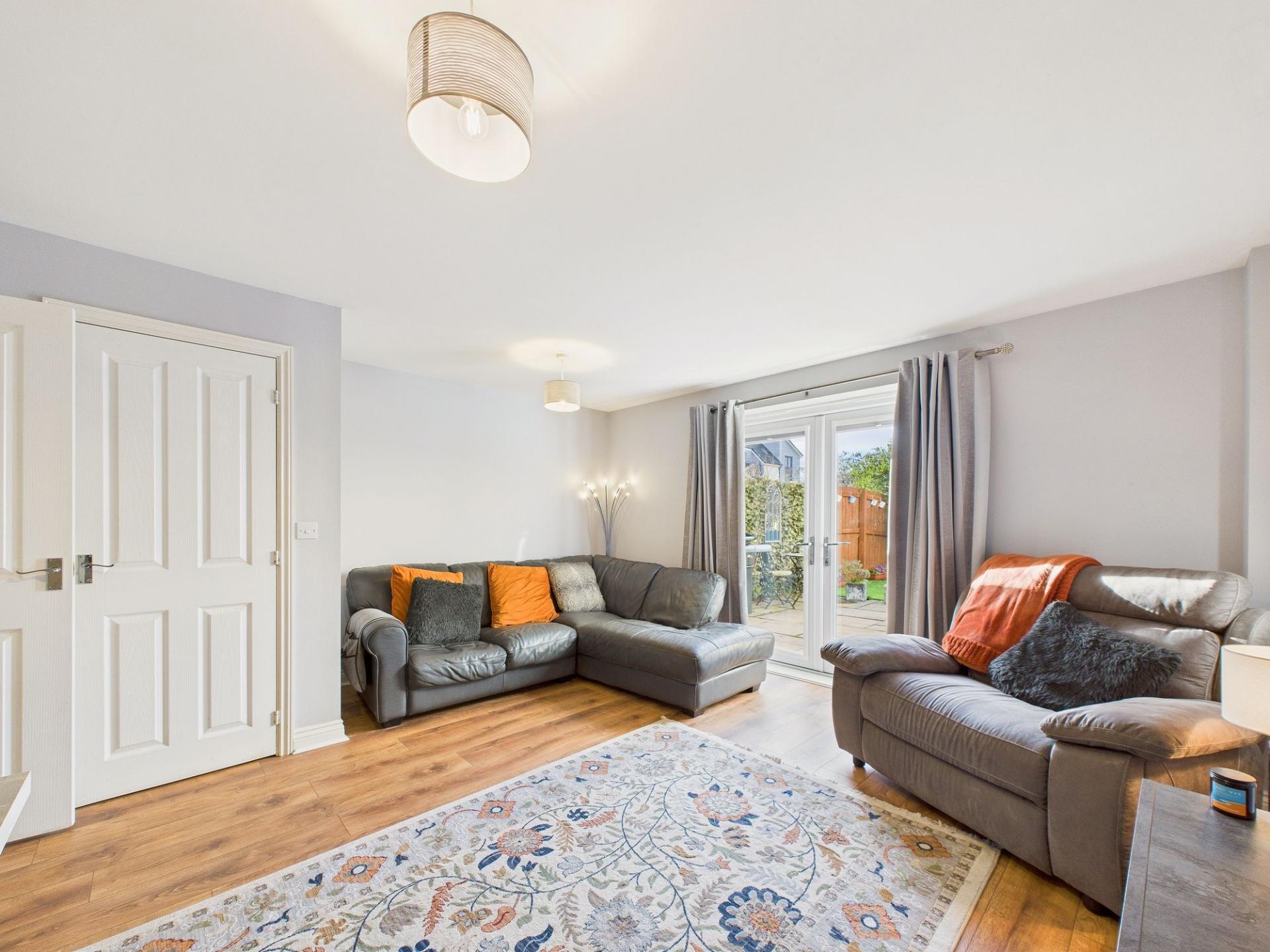 The property is entered via a welcoming entrance hallway which leads to a convenient ground floor WC. The fitted kitchen is thoughtfully designed and features a range of modern units along with built-in cooking appliances, providing both style and practicality. To the rear of the ground floor is a spacious lounge/diner, which benefits from patio doors opening directly onto the west-facing rear garden, creating a seamless connection between indoor and outdoor living spaces.