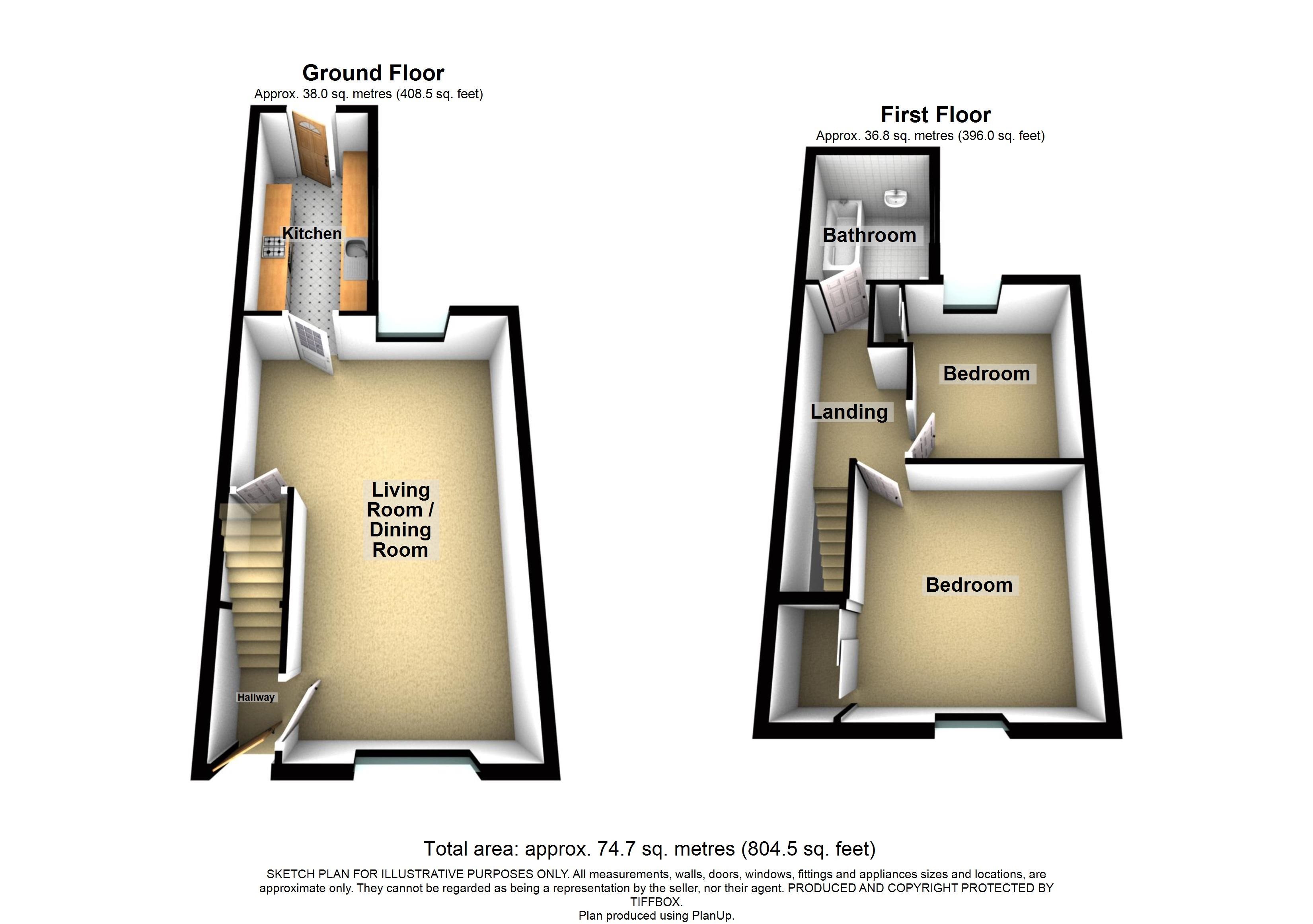 The accommodation on offer comprises: Entrance into the lobby, open plan living room and dining area, kitchen, stairs lead up to the first floor landing where there are two bedrooms and a bathroom.