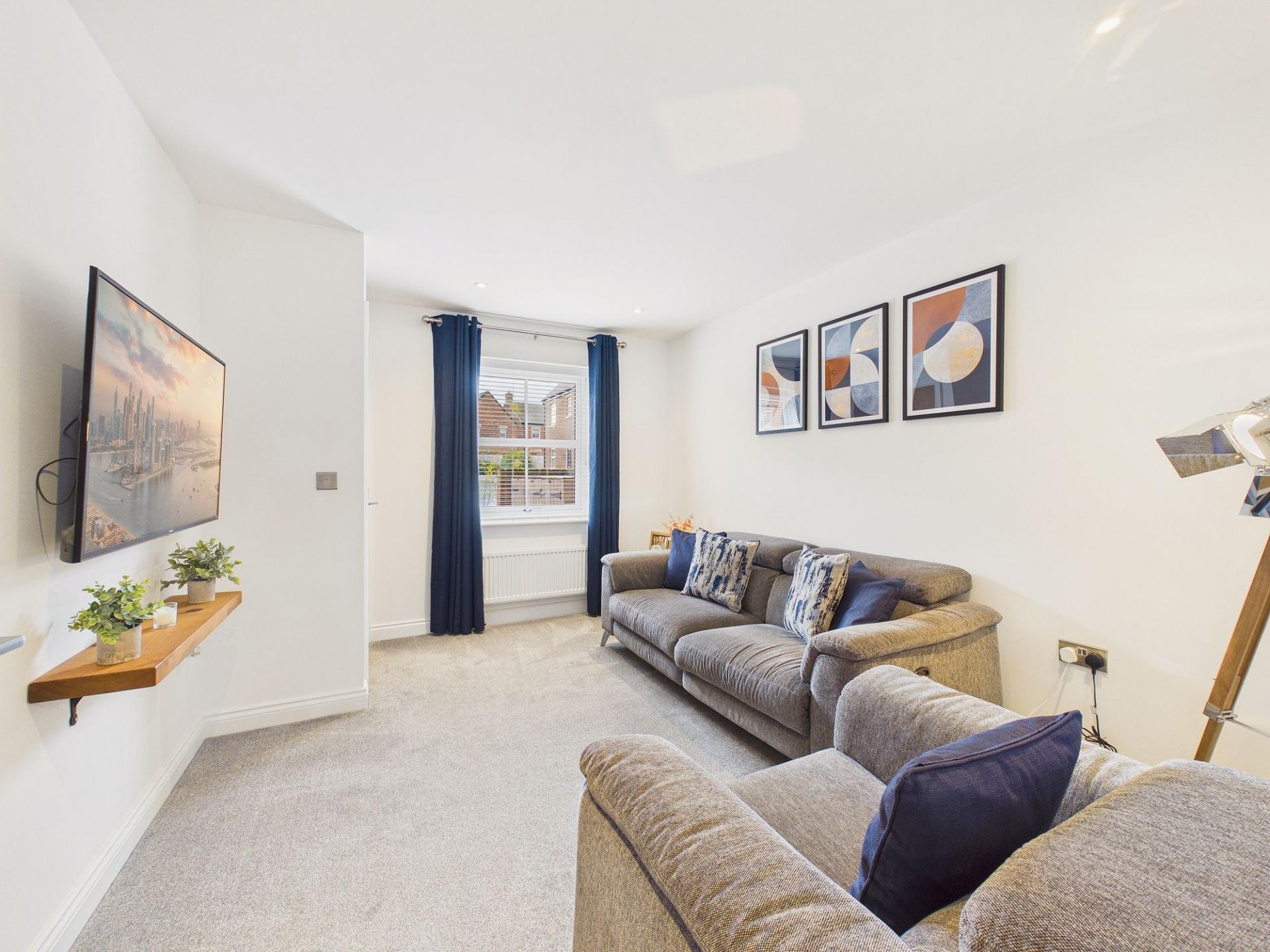 Externally, the home benefits from a block-paved driveway to the front, providing off-street parking. To the rear, an enclosed garden offers lawned areas and two patio seating spaces, perfect for outdoor dining and entertaining.