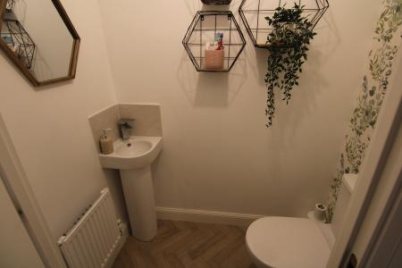 The property is entered via a welcoming entrance hall leading to a cloakroom/WC, fitted with a low-level WC, wash hand basin, and gas central heating radiator.