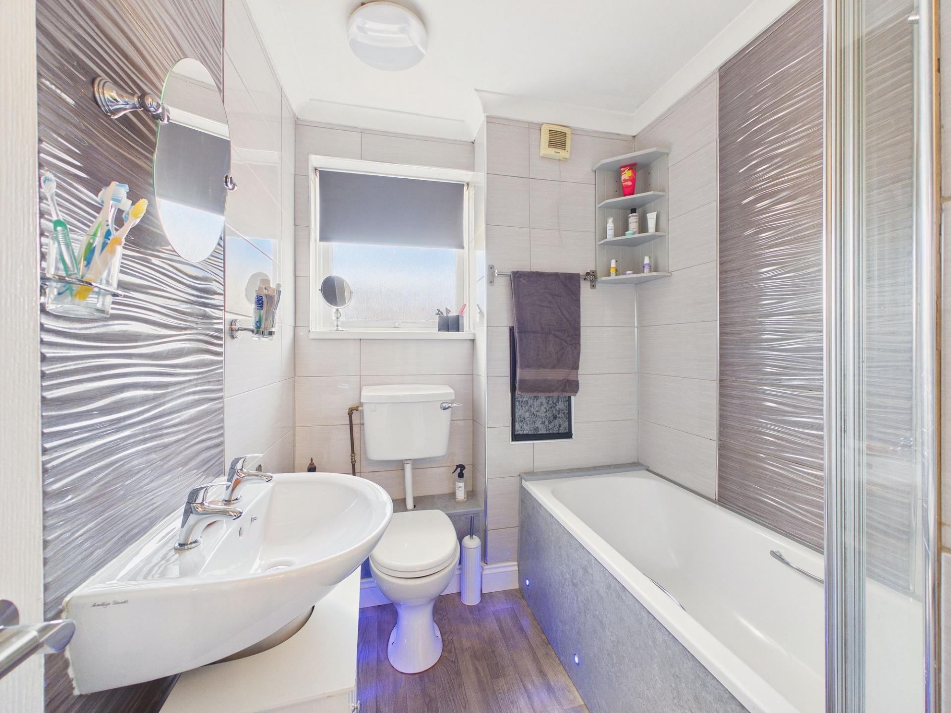 To the first floor, the property continues to offer well-balanced accommodation comprising three bedrooms. Each room provides flexibility for use as sleeping accommodation, a home office, or guest space depending on the needs of the new owner. Completing the upper floor is a bathroom fitted with a suite that includes a bath with a shower facility over.