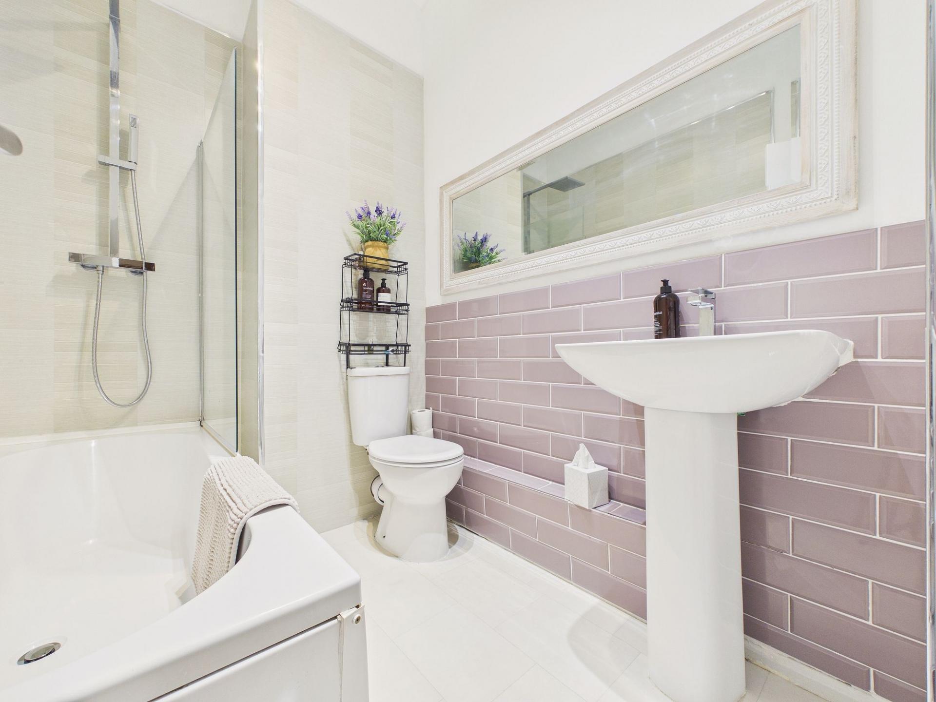 Completing the internal accommodation is the stylishly appointed bathroom, finished with a modern white suite. The space is enhanced by a mains-fed rainfall-style shower over the bath, combining luxury with everyday convenience.