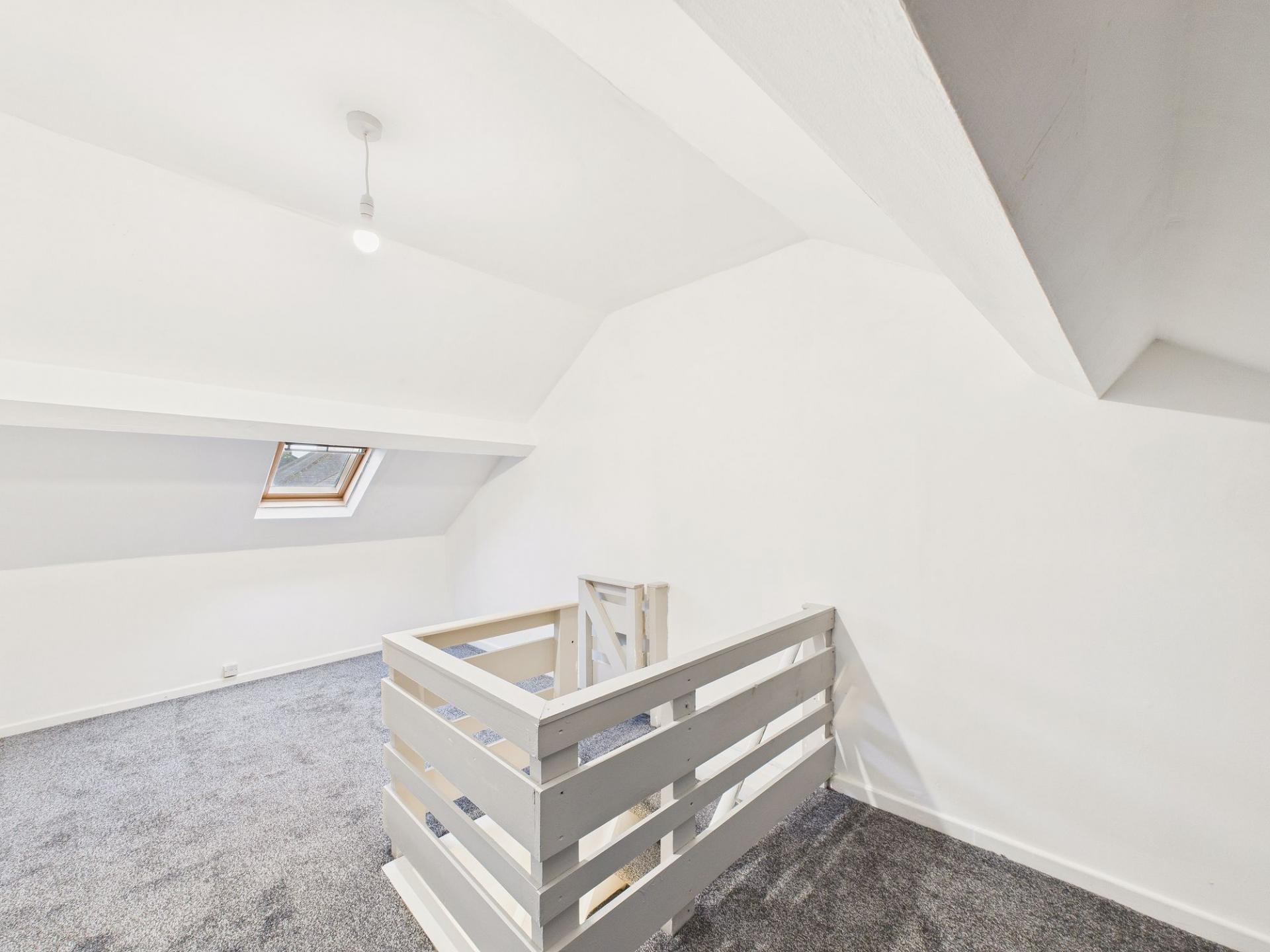 The first floor provides three well-proportioned bedrooms, each offering comfortable living space suitable for families, guests, or home working. The accommodation is completed by a family bathroom fitted with a modern white suite. In addition, the property benefits from a useful loft space, featuring a Velux-style window and providing excellent additional storage space.