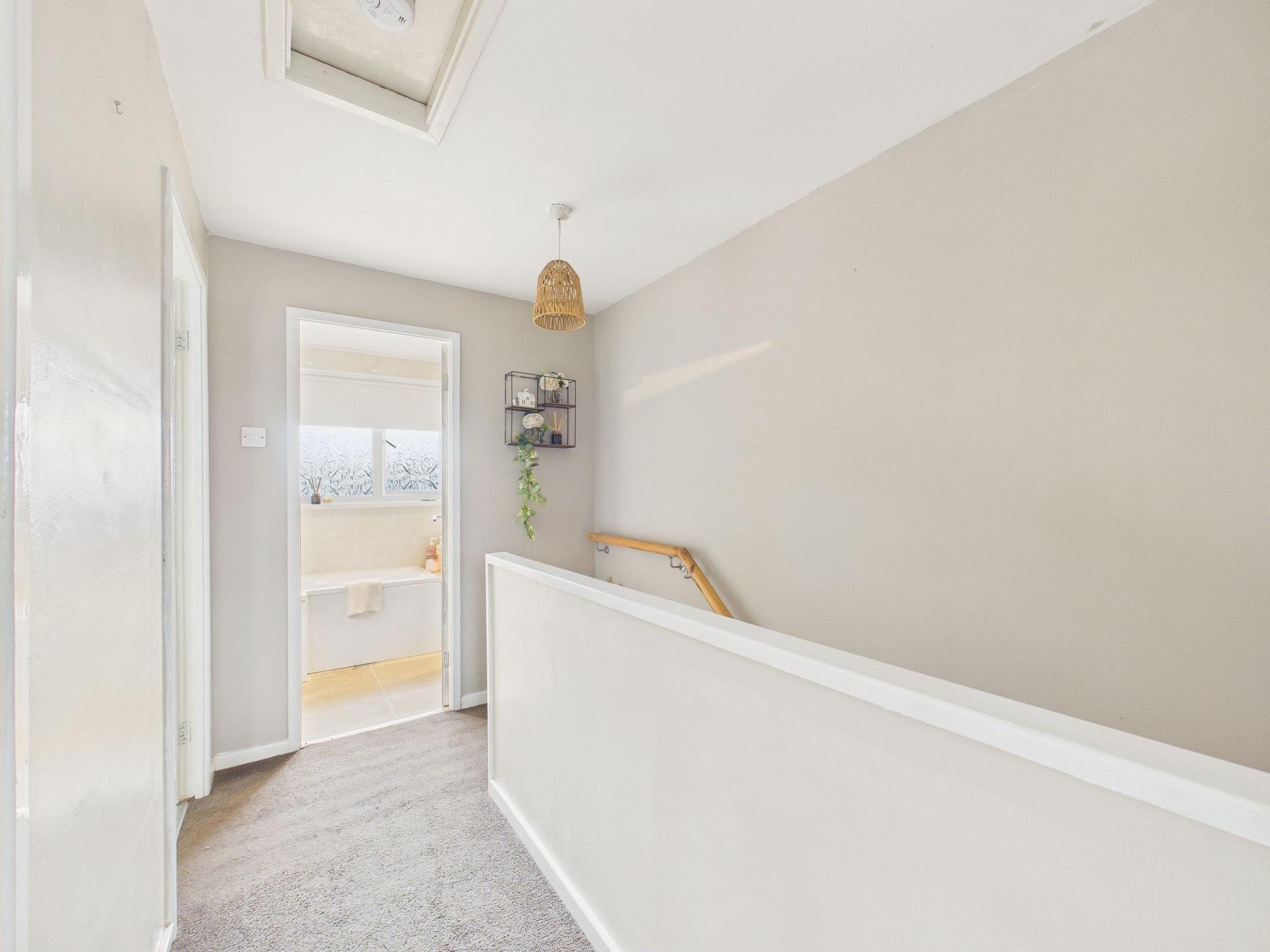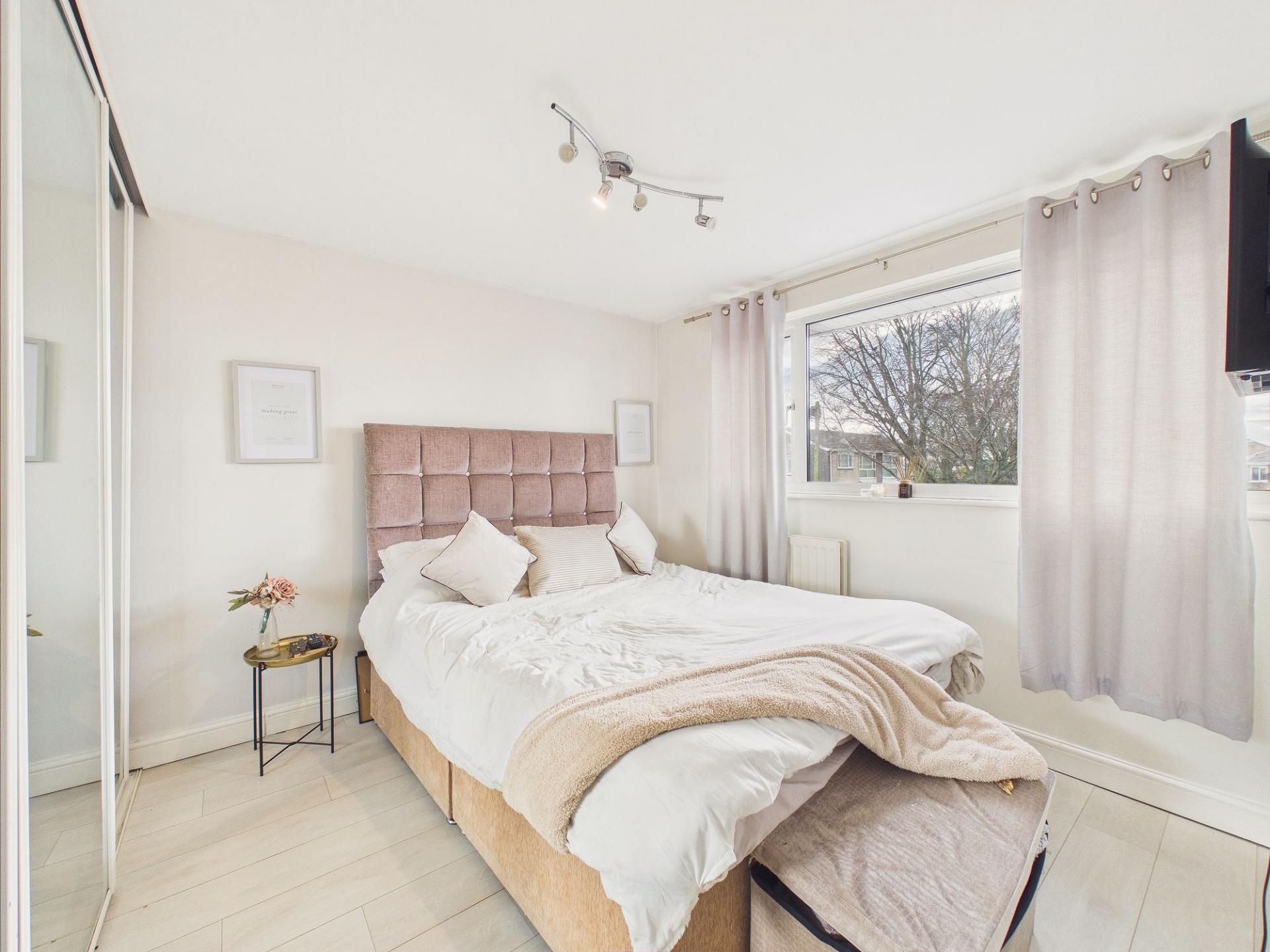 Upstairs, the property continues to impress with three generously sized bedrooms, each offering comfortable and versatile accommodation. The main bedroom benefits from a built-in sliding door wardrobe. The remaining bedrooms are equally well-proportioned and suitable for family living, guests, or home working. Completing the first floor is a beautifully appointed bathroom featuring a white suite with a mains-fed shower over the bath, combining style and functionality.
