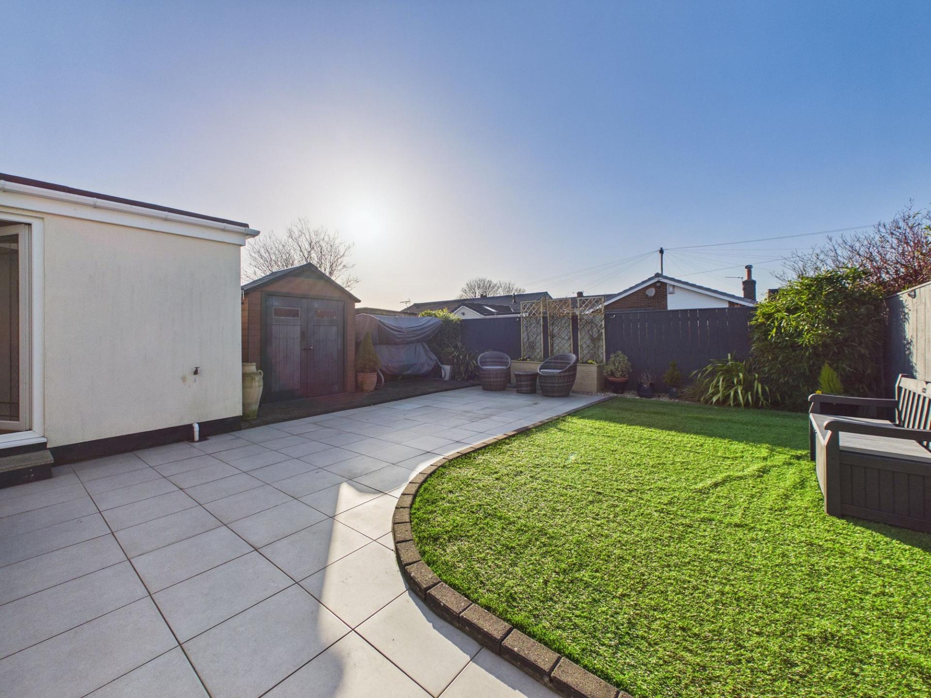 Externally, the property continues to impress. To the front, the garden is predominantly block paved, providing for convenient off-street parking. To the rear lies a fabulous enclosed garden which has been designed for ease of maintenance while still offering an attractive outdoor space. A generous paved patio area provides the perfect setting for outdoor dining, entertaining, or simply relaxing, while the artificial lawn creates a neat and tidy green space that can be enjoyed all year round.