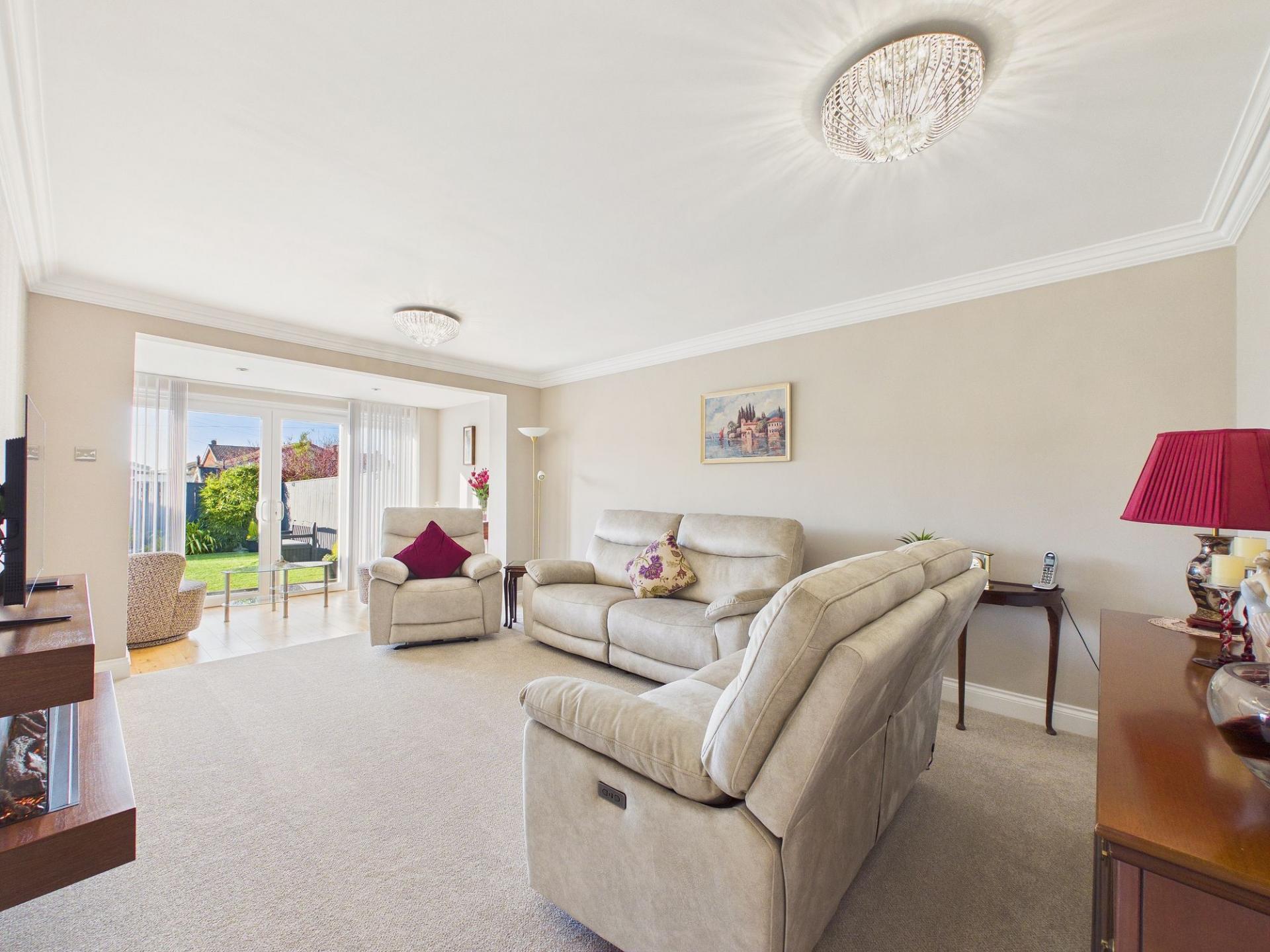 Upon entering the property, you are welcomed by an attractive entrance hallway which sets the tone for the style and presentation found within. The lounge is exceptionally spacious and beautifully presented, creating a warm and inviting living space ideal for both everyday living and hosting guests. Patio doors provide direct access to the rear patio and garden, seamlessly connecting indoor and outdoor living.