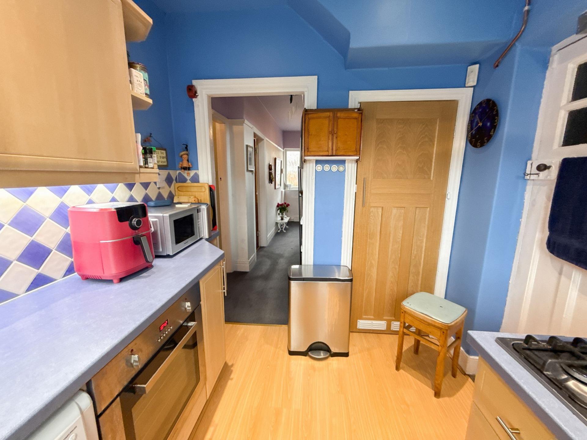 The fitted kitchen offers a range of modern wall and base units, ample worktop space, and built-in cooking appliances, creating a functional and stylish setting for everyday use.