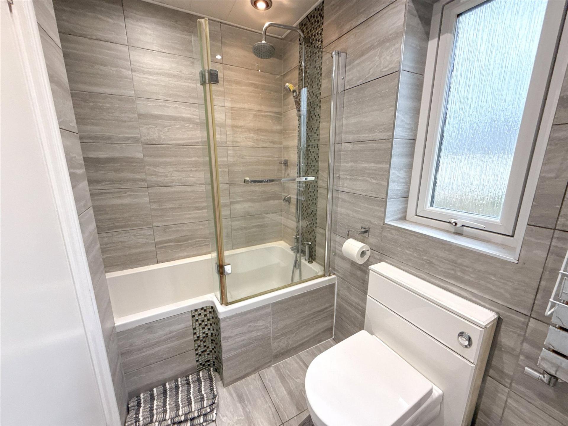 To the first floor, there are three well-proportioned bedrooms, offering flexibility for use as sleeping accommodation, a home office, or a nursery. The modern family bathroom is complete with a mains-fed rainfall-style shower over the bath, a WC, and a hand wash basin set within a vanity storage unit.