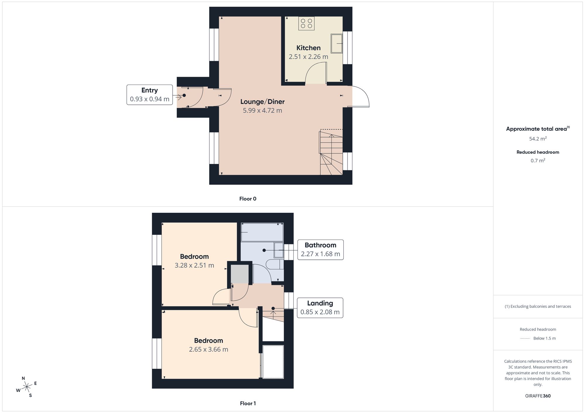 The first floor hosts two generously sized double bedrooms. The modern bathroom is fitted with a white suite and includes an electric shower over the bath.
