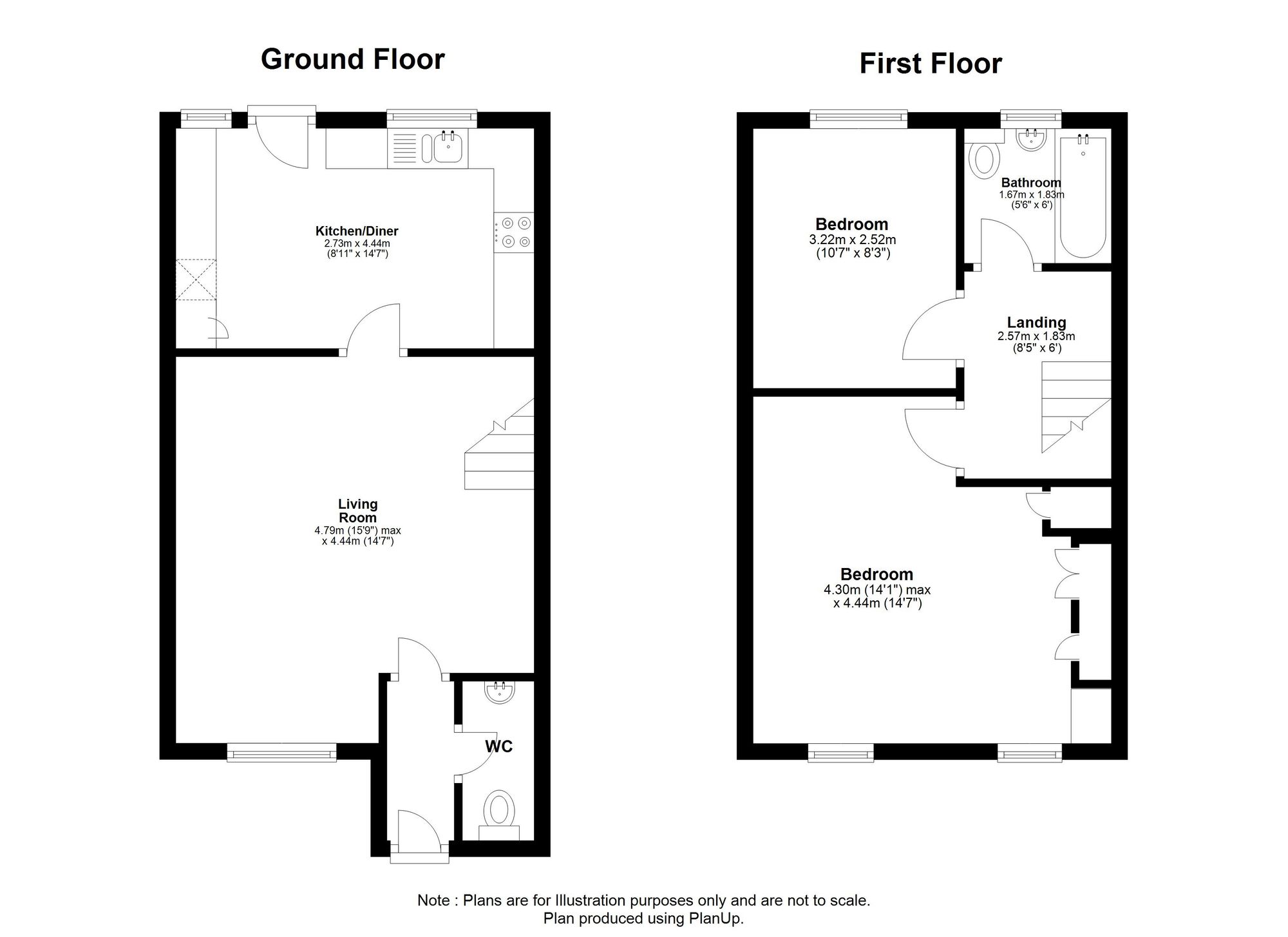 The first floor hosts two well-proportioned double bedrooms, both serviced by the bathroom with a modern white suite and incorporating a shower facility over the bath.