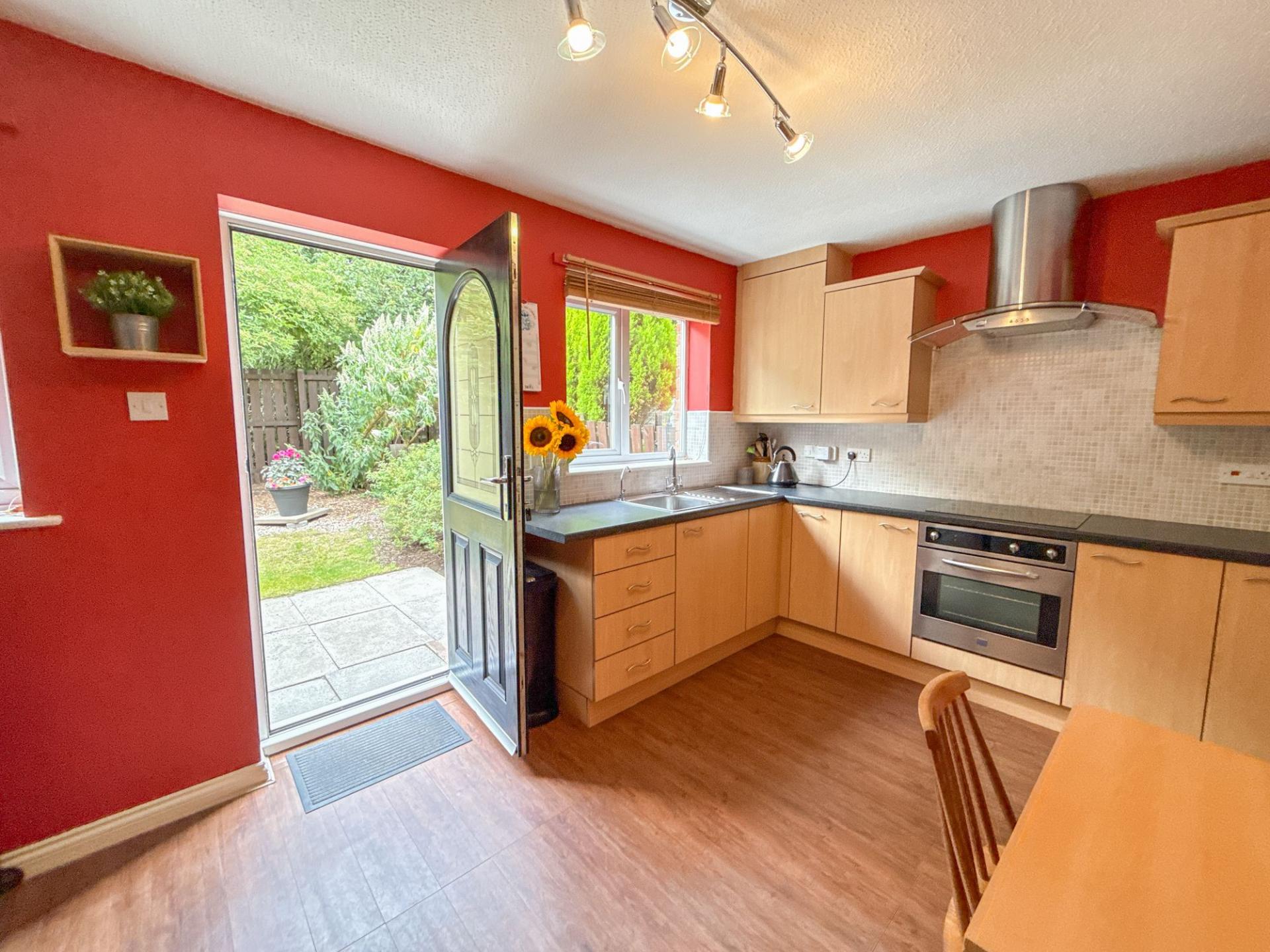 To the rear of the property, the generously sized dining kitchen is well appointed with a range of fitted wall and base units, complemented by built-in cooking appliances. There's ample room for a dining table, making this an ideal space for both casual dining and entertaining. A rear door opens directly to the garden, providing seamless indoor-outdoor living during the warmer months.