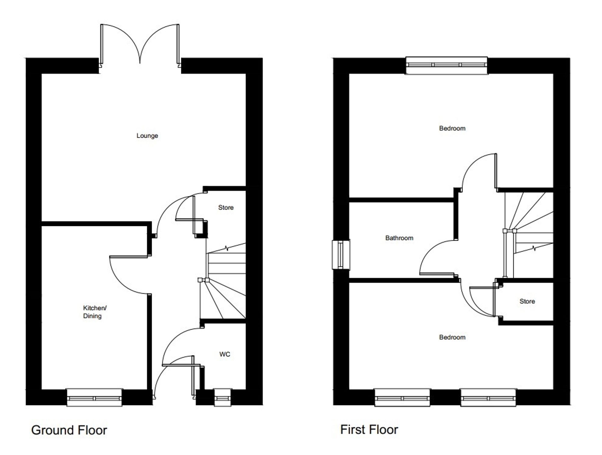 Upstairs, the first-floor landing leads to two generously sized bedrooms, both tastefully decorated and offering flexibility for use as sleeping quarters, guest accommodation, or even a home office. The modern bathroom features a white suite with shower-over-bath facility, ideal for both quick showers and leisurely soaks.