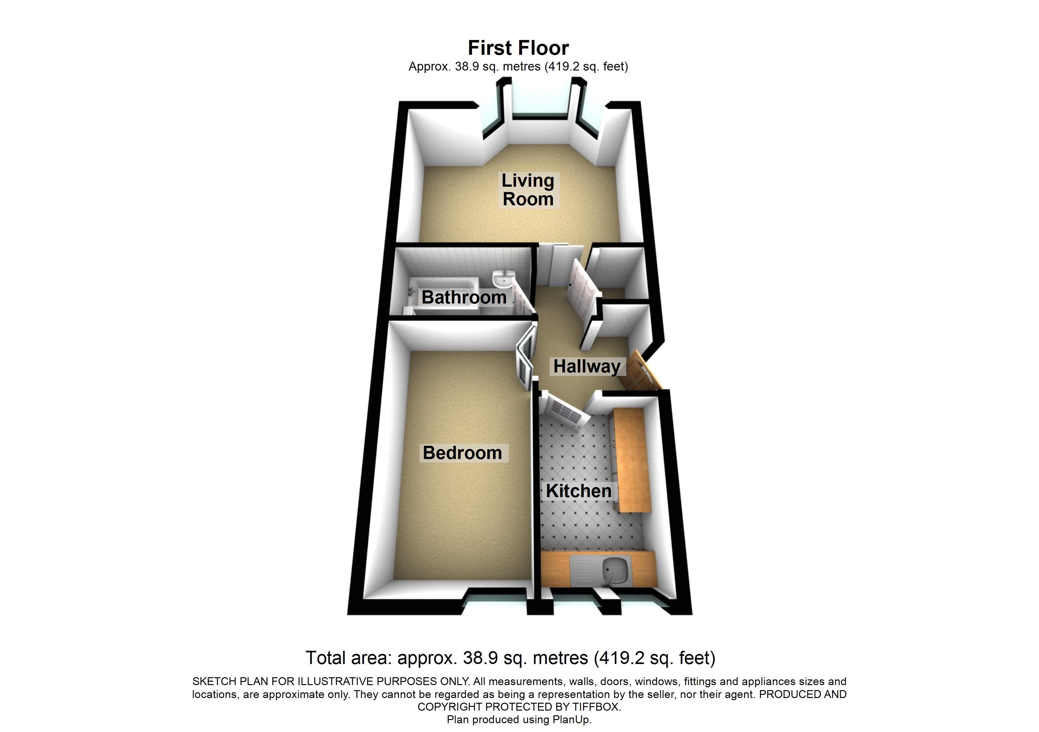 The property on offer briefly comprises; Entrance into the apartment, living room featuring bay window, kitchen with integrated appliances, bedroom and bathroom.