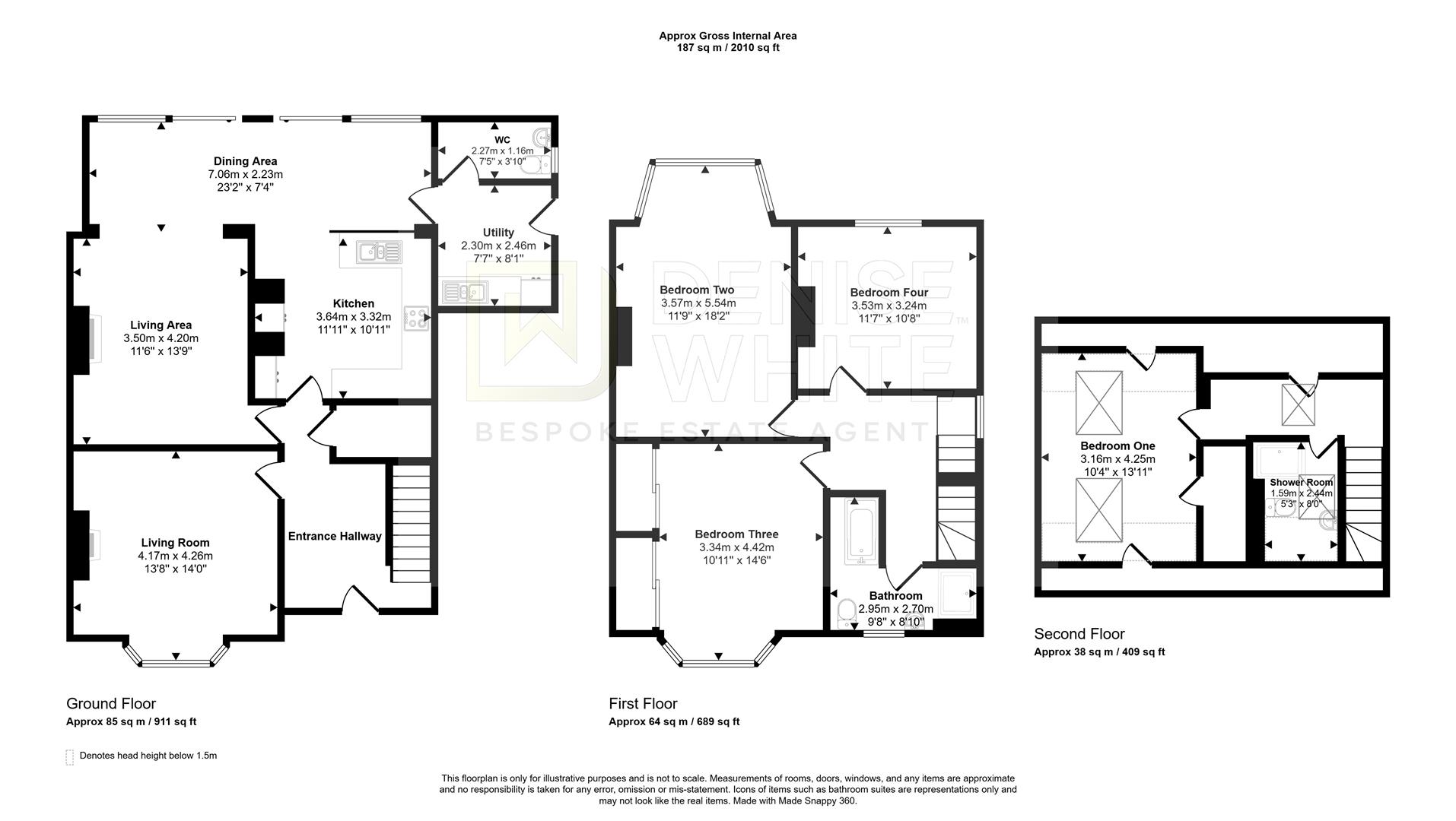 - Four double bedrooms, a luxurious family bathroom on the first floor, including a stunning loft-converted primary suite with shower room