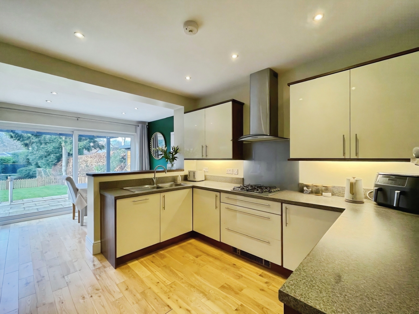 - Impressive open-plan kitchen, dining and living space with sliding doors opening onto the rear garden