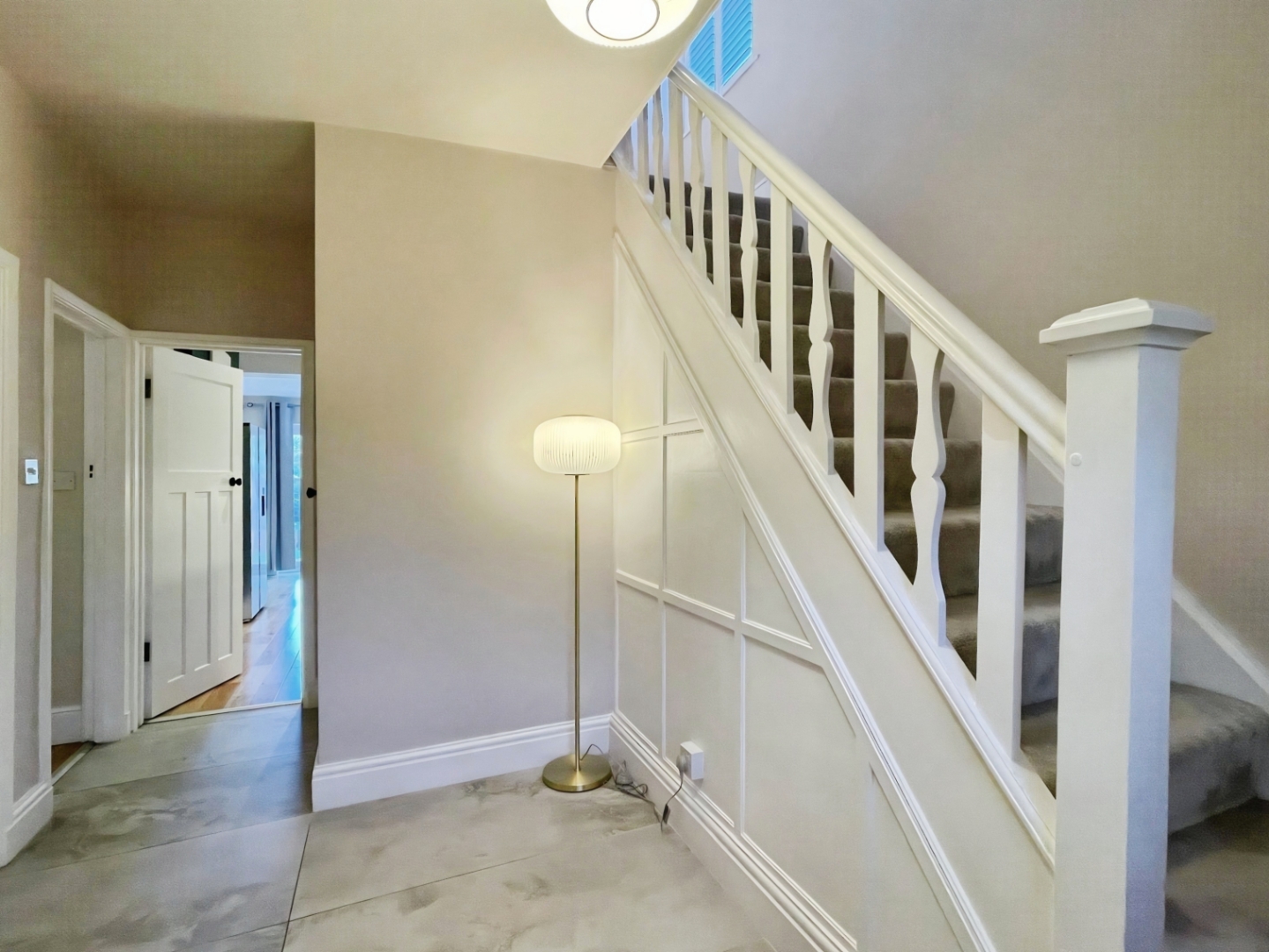 - Beautifully presented interior featuring a welcoming entrance hall with panelled staircase and generous storage