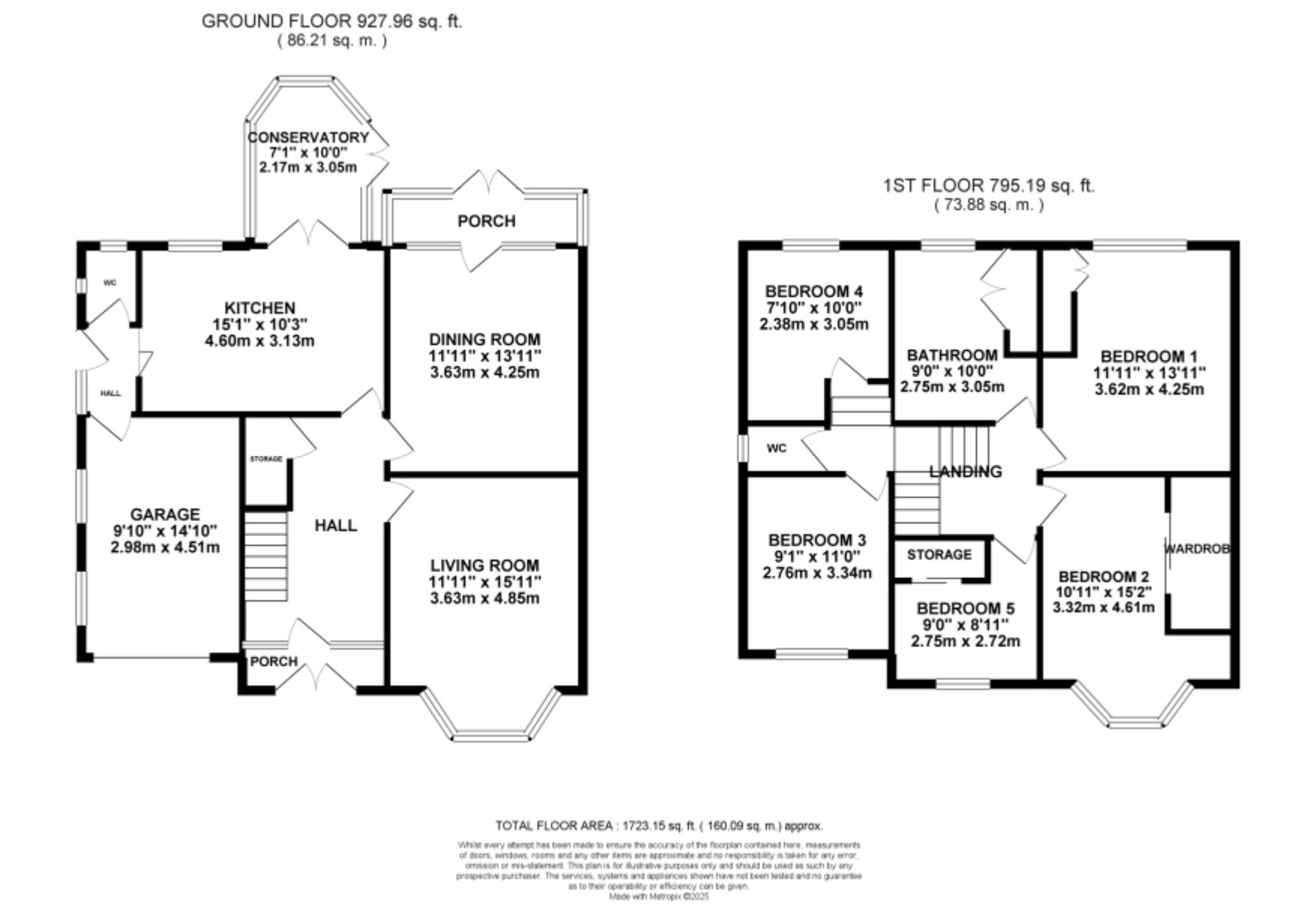 - Five bedrooms providing plenty of accommodations for growing families, plus a bathroom with bath and shower, and a separate W/C.