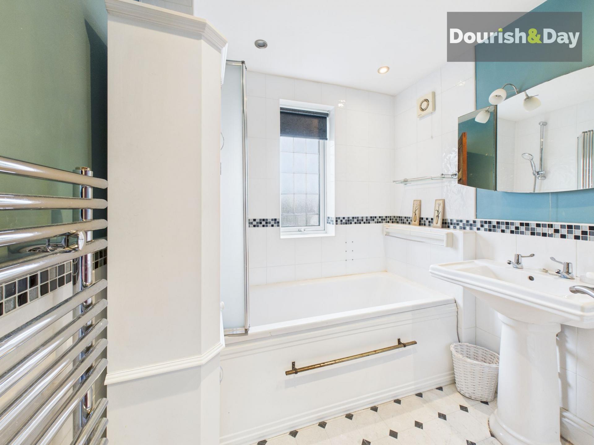 Upstairs, the property continues to impress with two large double bedrooms and a third versatile bedroom, ideal as a nursery, home office, study or hobby room. All bedrooms are light and well-proportioned, while the bathroom is fitted with a clean white suite, including a bath with shower over.
