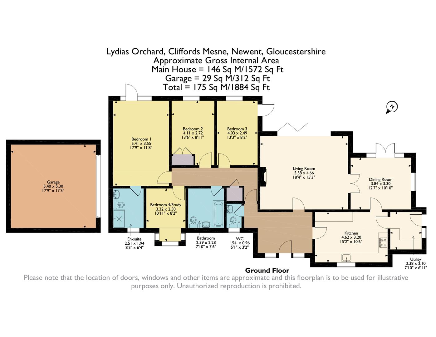 Detached Double Garage - 5.41m x 5.31m (17'9 x 17'5) - Accessed via up and over door, loft area for storage, small store shed (9'10 x 7'10) to the rear, rear aspect window, personal door through to the gardens.
