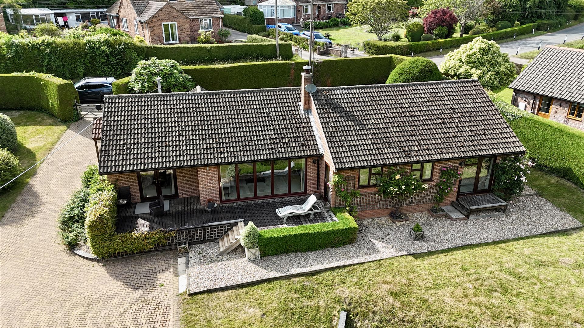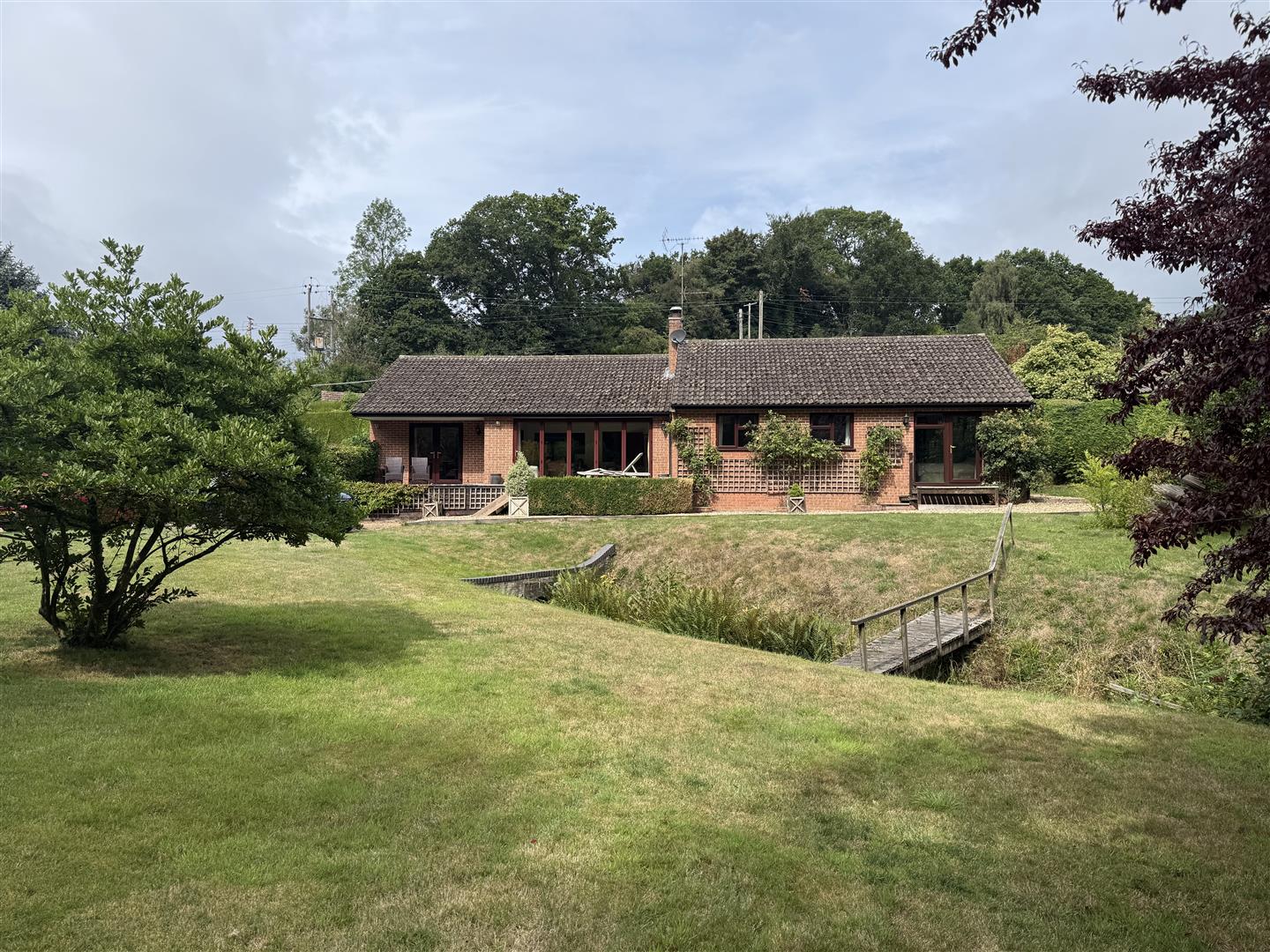 A RARELY AVAILABLE FOUR BEDROOM DETACHED BUNGALOW situated in a LOVELY UNSPOILT LOCATION in the VILLAGE OF CLIFFORDS MESNE, FITTED KITCHEN with AGA, LIVING ROOM with BI-FOLD DOORS having a SUPERB OUTLOOK OVER THE GROUNDS AND WOODLAND, LARGE MATURE PLOT approaching HALF AN ACRE with PRETTY BABBLING BROOK RUNNING THROUGH, DETACHED DOUBLE GARAGE and AMPLE PARKING.