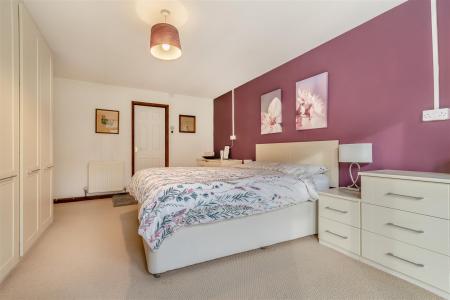 Bedroom 1 - 5.41m x 3.56m (17'9 x 11'8) - Range of built-in bedroom furniture to include drawers, wardrobes, dressing tables etc., two double radiators, full height window and door with the rear aspect having a lovely aspect over the gardens and woodland beyond. Fully glazed door through to the rear decked area. Door to:
