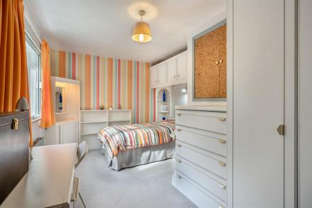 Bedroom 2 - 4.80m x 2.97m max (15'9 x 9'9 max) - Range of built-in bedroom furniture to include wardrobes, drawers, cupboards, shelving areas etc., single radiator, access to roof space, front aspect south facing window.