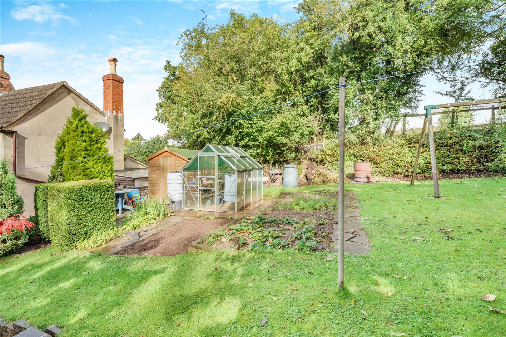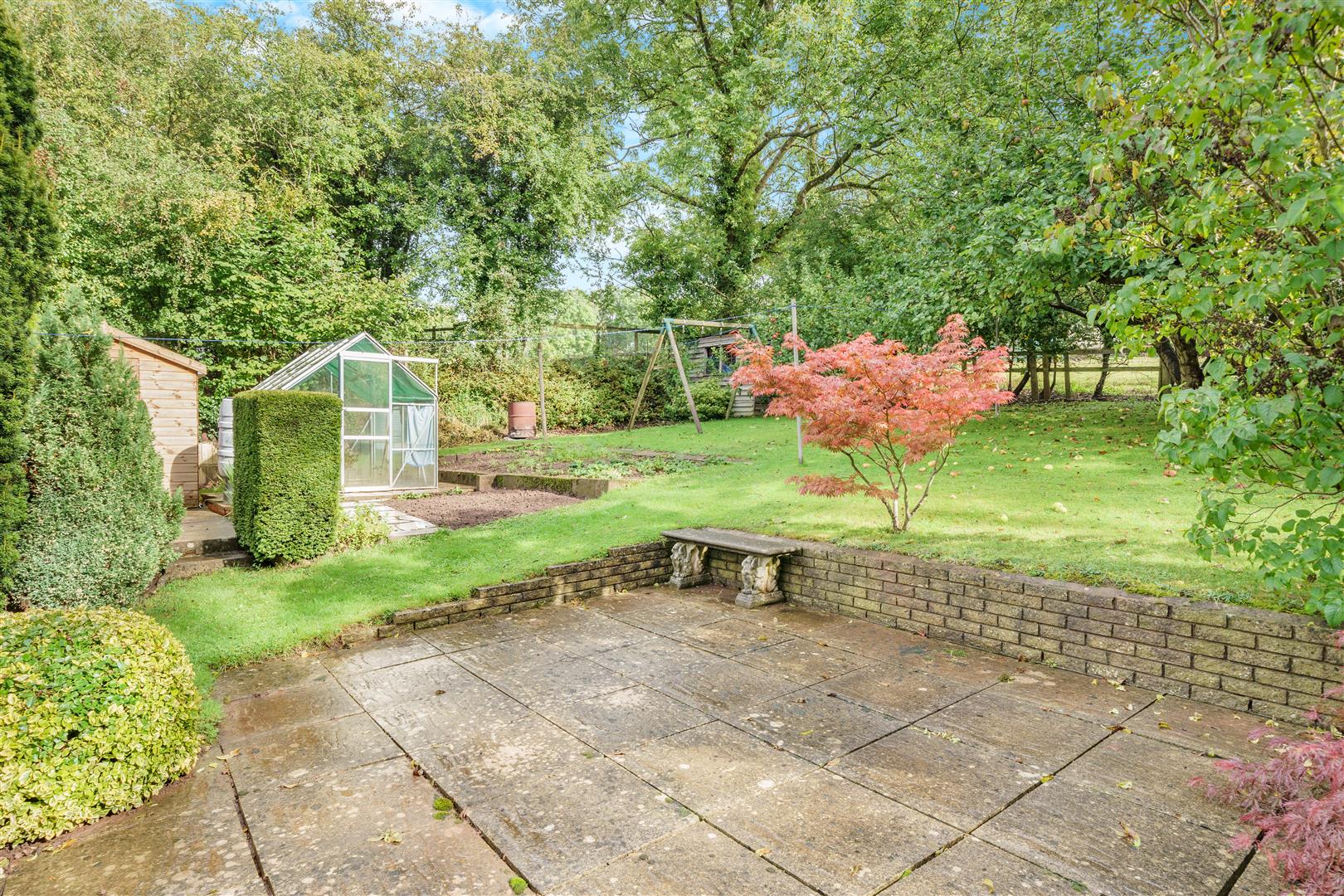 The property has lovely gardens surrounding, predominantly to the south facing front of the property with various lawned areas, pathways, Gorsley stone walling, paved patio areas, fish pond with waterfall, further large patio, greenhouse, garden shed, vegetable produce area, outside lighting, outside tap, mature fruit trees, fencing surround. To the rear, there is a lovely private outlook onto open fields. The whole plot amounts to approximately 1/5th of an acre.