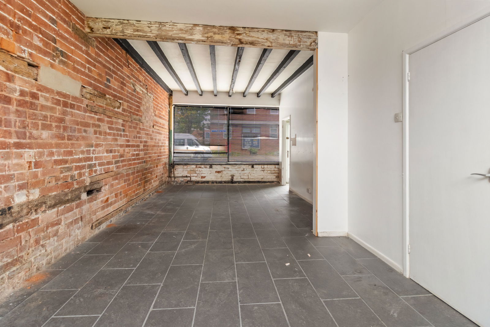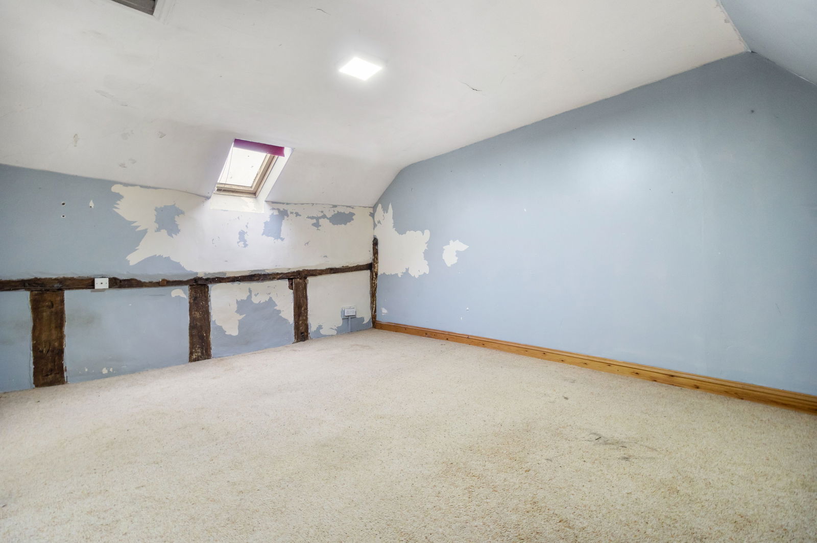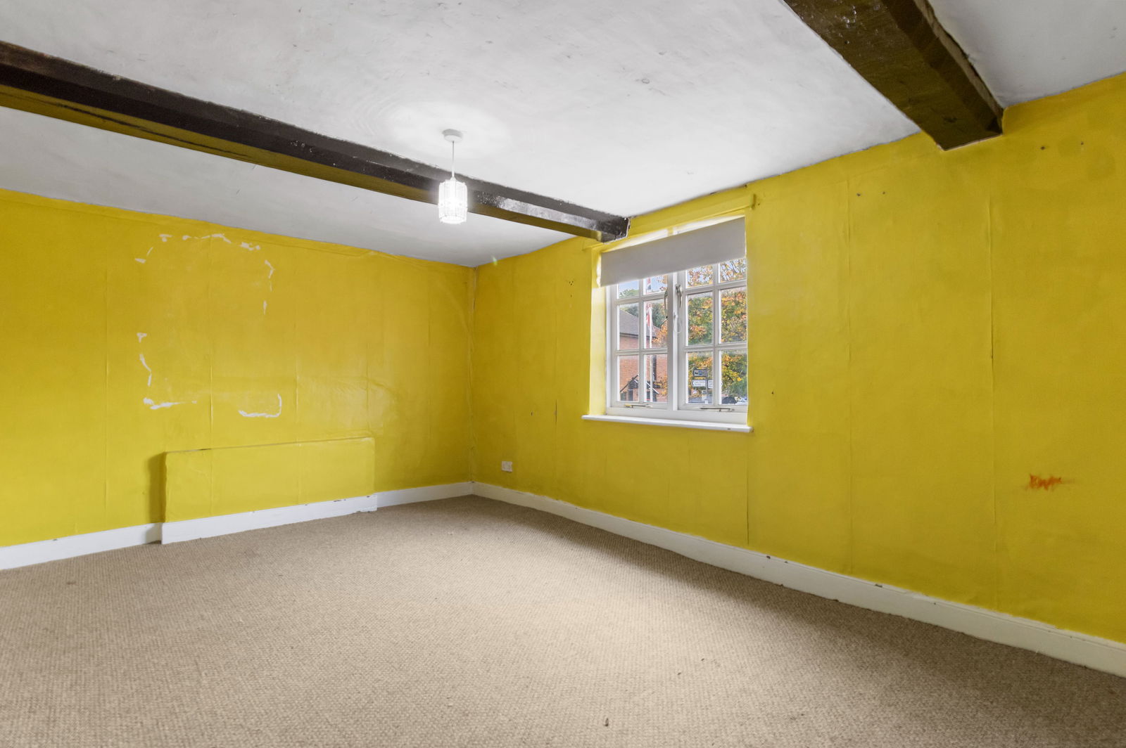 With wall light. Flagstone flooring. Radiator. Exposed Beams.