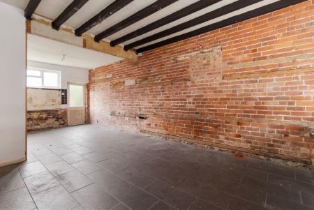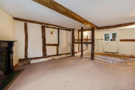 Open plan with four wall lights. Flagstone flooring. Double glazed window to the front aspect. Radiator. Fireplace with tiled surround and hearth. Exposed beams.