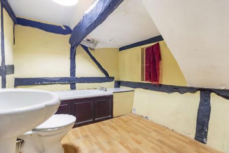 Ceiling Light Point. Panelled bath. Ceramic sink. Low level toilet, Radiator. Window to the rear aspect.