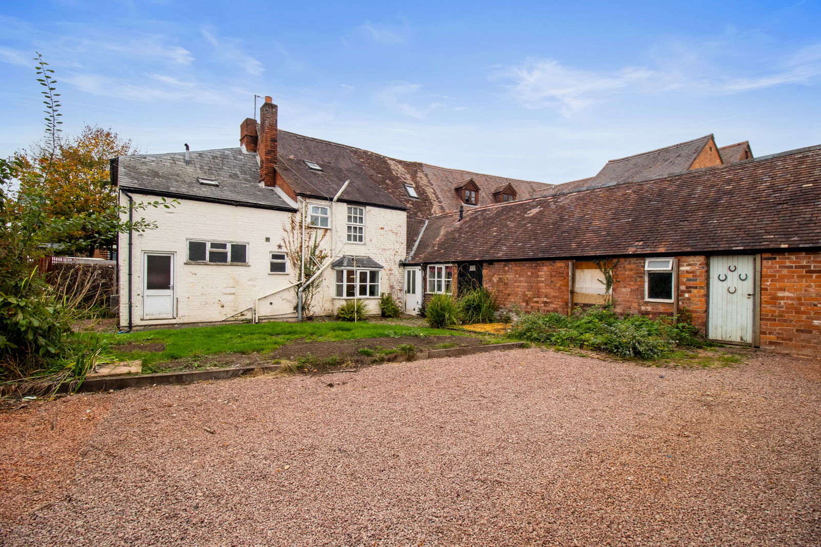 The main residence is arranged over three floors and retains many period features, offering five well-proportioned bedrooms, two bathrooms, and a selection of reception rooms that offer a glimpse into the property's historic charm. To the rear, a private courtyard garden provides a useful outside space, while the inclusion of off-road parking and a range of outbuildings further adds to its appeal and potential for future development, subject to necessary consents.