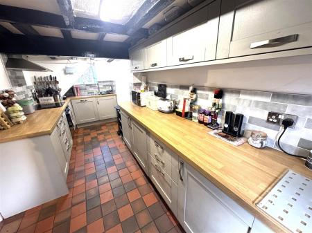 Kitchen - 5.26m x 2.16m (17'03 x 7'01) - One and a half bowl single drainer sink unit, mixer tap, cupboard under, base and wall mounted units, integrated dishwasher, electric double ove, four ring hob over, cooker hood above, tiled flooring, exposed beams, double radiator, front and rear aspect windows with a private outlook over the gardens.