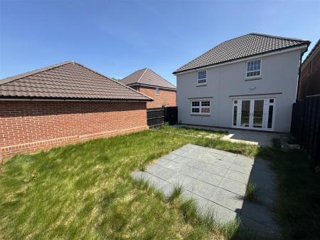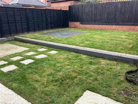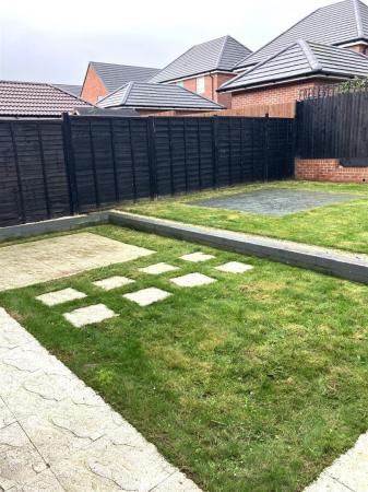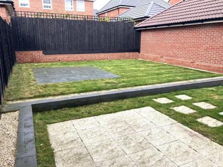 Rear Garden - Paved patio area, outside tap and lighting, walling and fencing surround, west facing.
