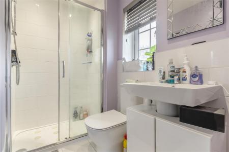 En-Suite Shower Room - 2.29m x 1.47m (7'06 x 4'10) - Double shower cubicle, wc, wash hand basin, tiled flooring, side aspect window.