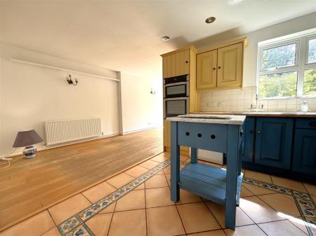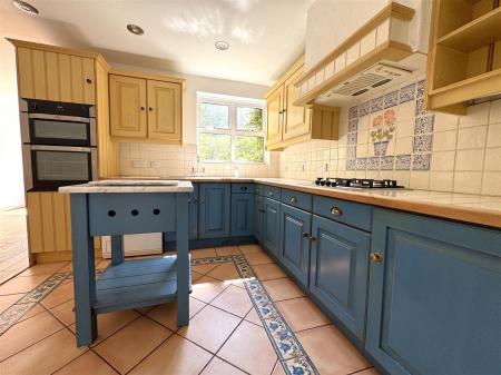 Kitchen / Dining / Family Room - 6.32m x 5.49m max (20'9 x 18'0 max) - The kitchen comprises of a range of base and wall mounted units with tiled worktops and splashbacks, integrated double oven, plumbing for washing machine, four ring gas hob with extractor fan over, integrated fridge, inset spotlighting, rear aspect window.