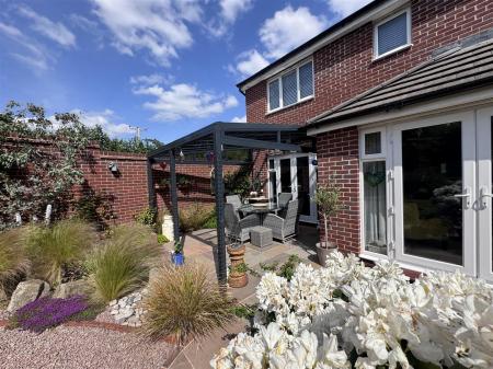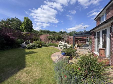 To the front of the property, the garden is predominantly laid to lawn and enclosed by hedging. To the front, there is a double power point. To the right hand side of the property, there is a garden shed with Karndean flooring plus a further storage area to the rear of the shed. To the right hand side of the shed, there is a garden gate giving access onto a public footpath which leads onto Horsefair Lane and to countryside walks. A paved walkway gives access to the side and in turn the rear garden. The manicured rear garden was designed by Leaf Creative with stone water feature, lighting throughout the garden, outside taps, double power points, glass covered area with two electric heaters with seating area, enclosed by walling.