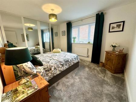 Bedroom 2 - 4.42m x 3.51m (14'6 x 11'6) - Radiator, built-in double wardrobes with hanging rail and shelving, radiator, rear aspect UPVC double glazed windows with a pleasant countryside outlook. Door to: