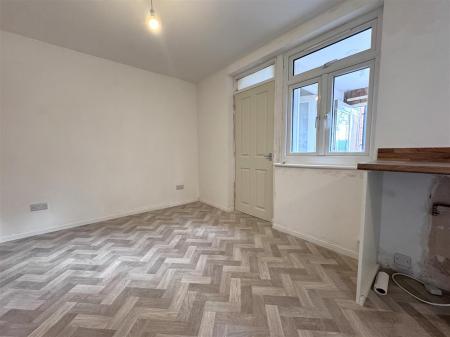 Kitchen / Diner - 5.64m x 2.77m (18'6 x 9'1) - Re-fitted to comprise a range of base, wall mounted units with laminated work tops and splash backs, one and a half bowl stainless steel sink unit, integrated electric oven with four ring induction hob, with extractor fan over, stainless steel splash back, plumbing for washing machine, space for under counter appliance, two additional recesses, ideal for pantry / storage, two rear aspect windows and back door into: