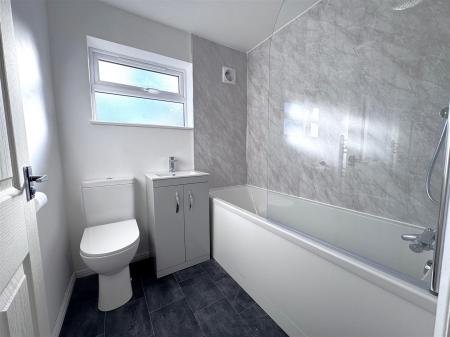 Bathroom - 1.91m x 1.88m (6'3 x 6'2) - Panelled bath with mixed tap, built-in over head detachable shower system, laminated splashbacks, vanity wash hand basin, WC, heated towel rail, extractor fan, rear aspect frosted window.