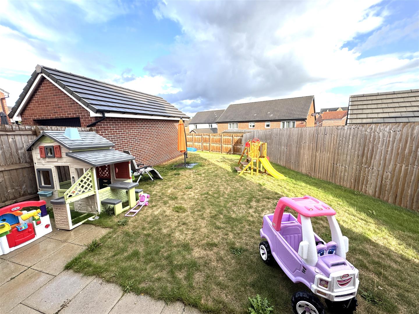 From the parking area, a pedestrian gates leads to the rear garden which has patio/seating area, outside lighting, outside tap, lawned area, enclosed by fencing and measures 50' in length.