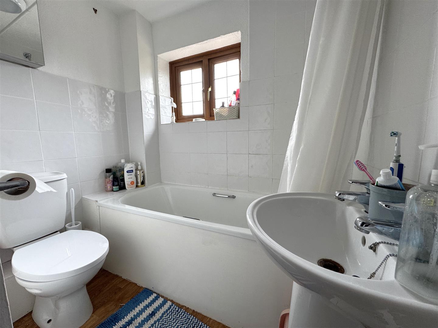 Bathroom - 2.03m x 1.88m max (6'8 x 6'2 max) - Panelled bath with mixer tap and shower over, shower detachment, WC, wash hand basin, single radiator, thumb latch door to storage cupboard, front aspect frosted window.