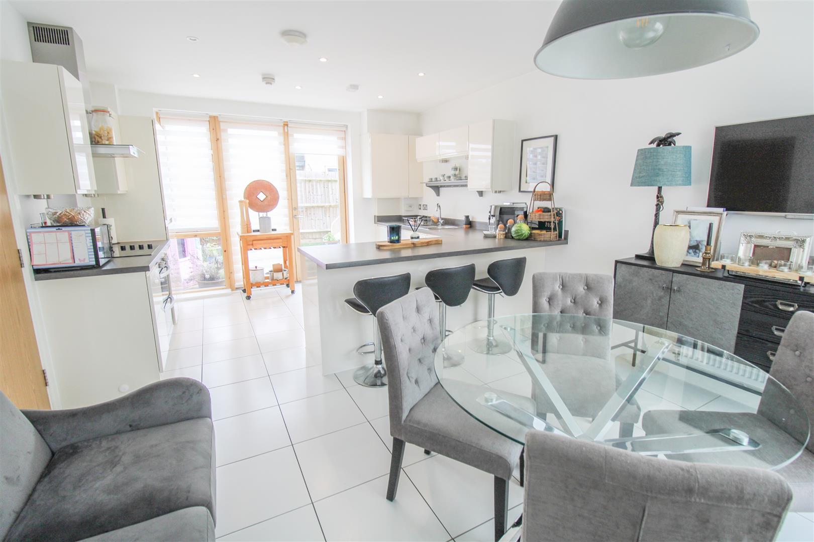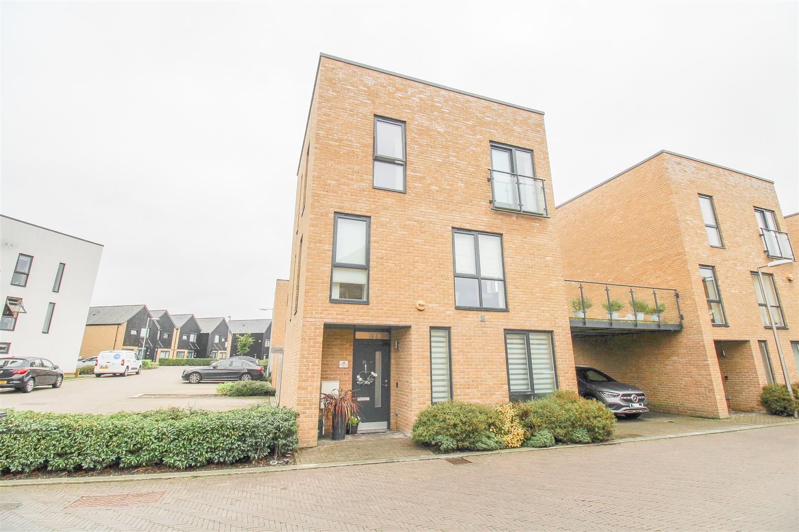 A stunning three bedroom detached townhouse found in the popular turning of Goldcrest Way in Newhall. On the ground floor there is an entrance hallway which leads to a large open plan kitchen/diner with a range of fitted wall and base units with integrated appliances and a cloakroom/WC. On the first floor is the lounge, which opens onto a large sun terrace, plus one bedroom and a further cloakroom/WC, while on the second floor are two more bedrooms with an en-suite and Juliette balcony to the master and a family bathroom. The rear garden is laid to astro turf with a decking area and side access leading out to the carport for two vehicles. Goldcrest Way is found just off Sparrowhawk Way, within walking distance of the Newhall school, shops and open fields.