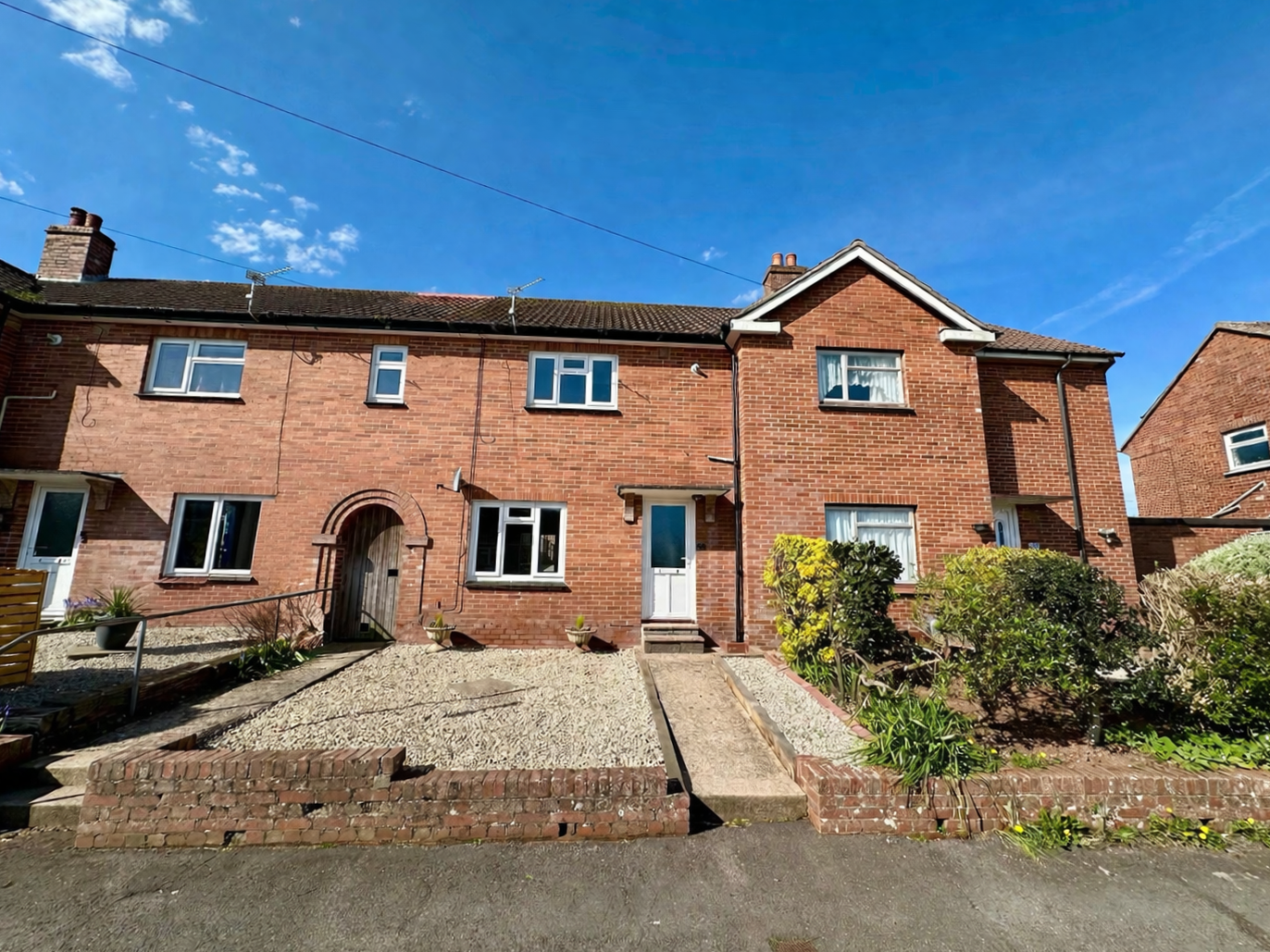 OUTSIDE: The front of the property is approached by a path leading to the front door with a level garden laid with ornamental chippings and the potential to create off street parking subject to planning. A further pathway leads to the gated side access leading to the rear garden.