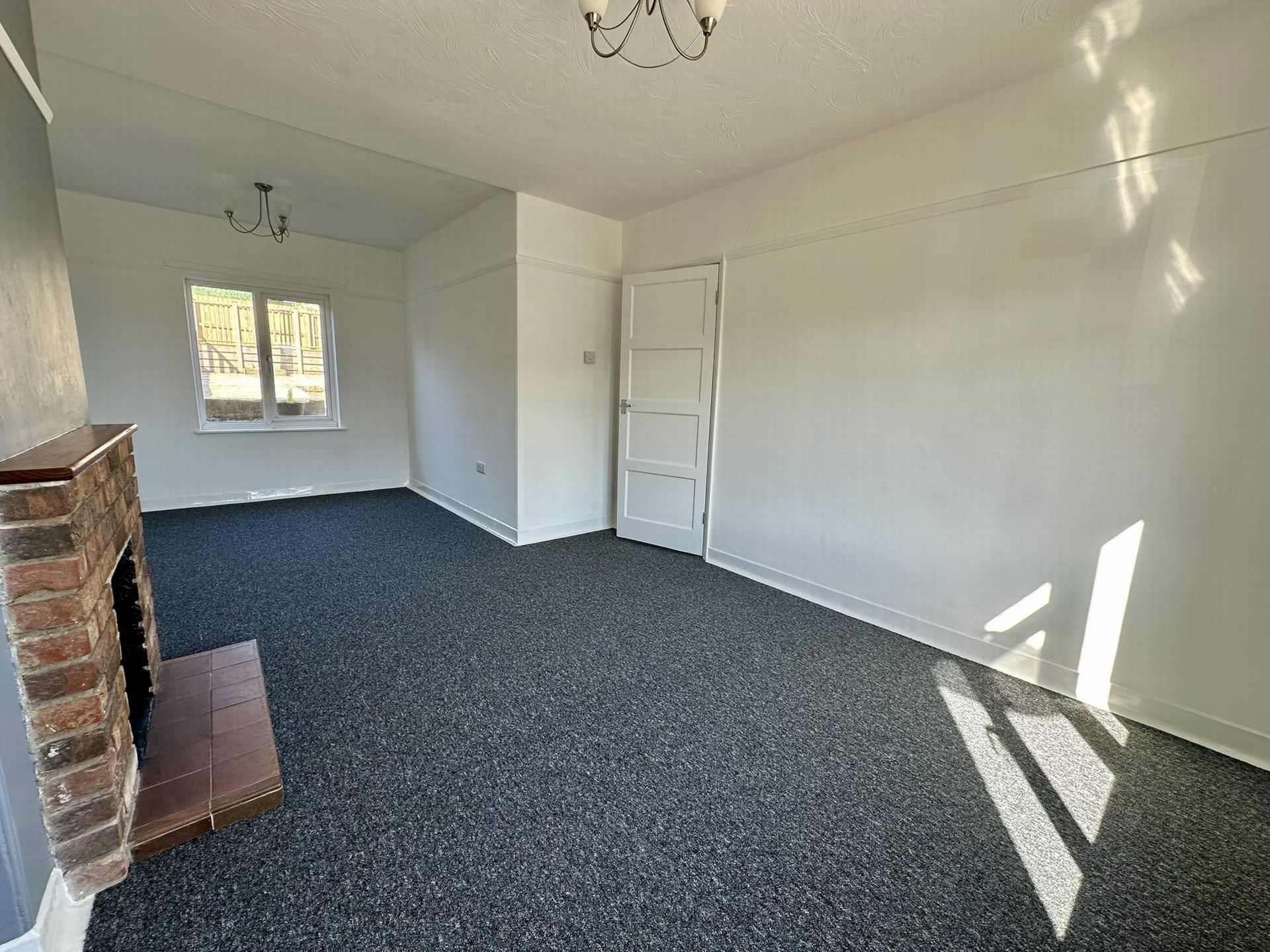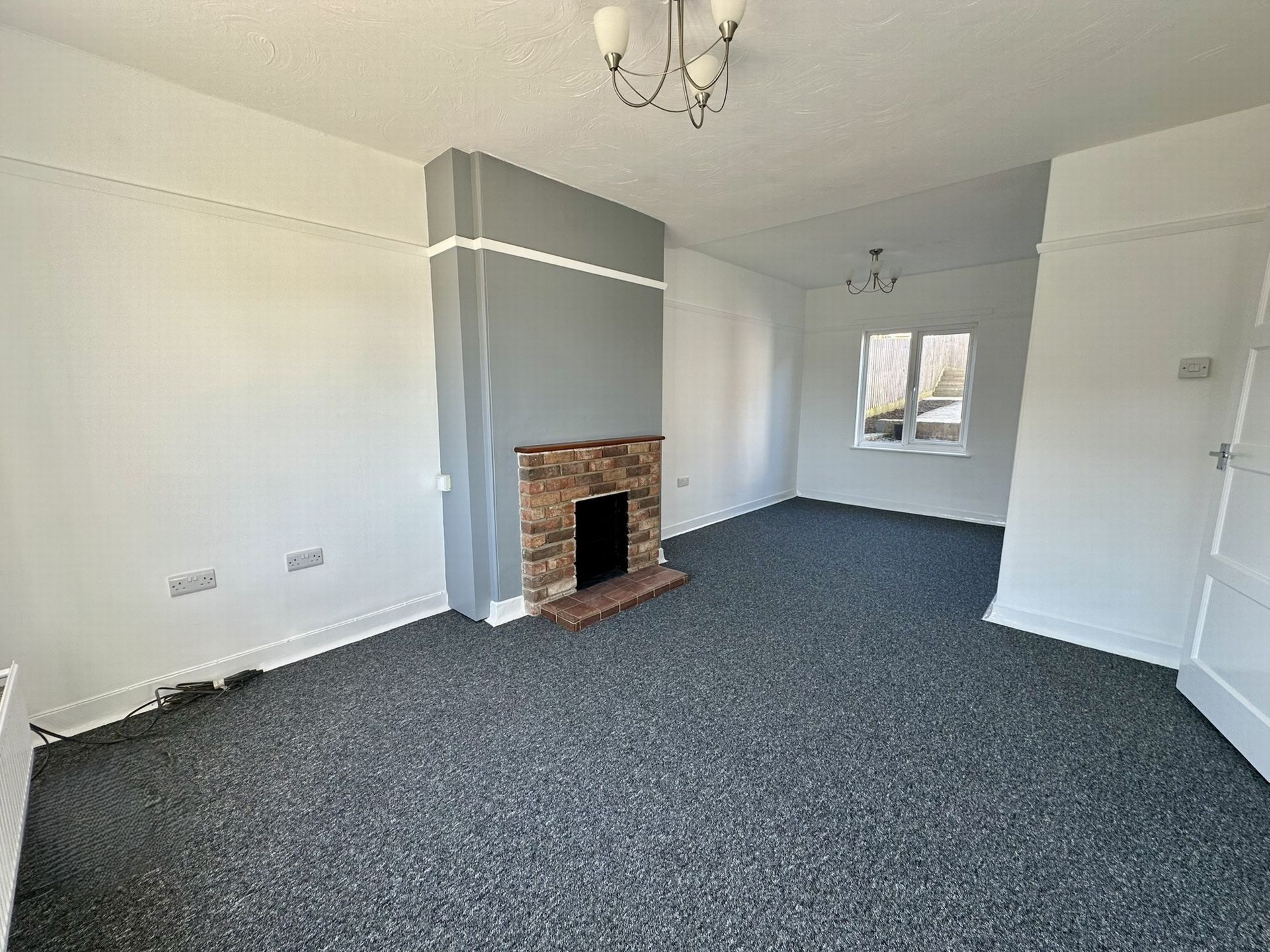 LOUNGE: 3.67m x 3.25m (12'0" x 10'8"), Open plan lounge dining room with uPVC double glazed window to the front aspect, radiator, feature brick fireplace, picture rail and open to:
