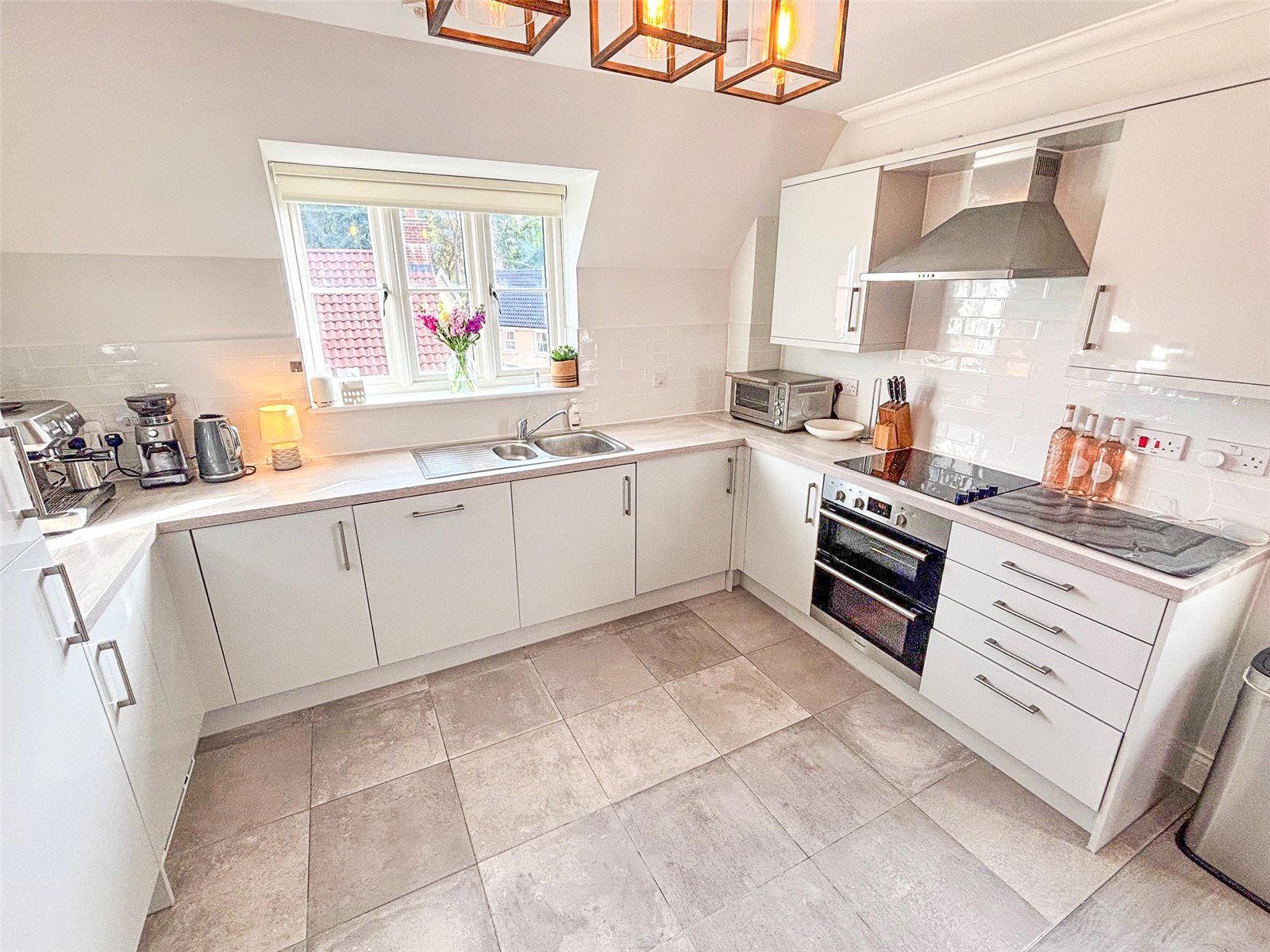 This apartment has been impeccably kept and has a light and airy feel. There is an entrance hall with cupboard and airing cupboard. The living/dining/kitchen is a triple aspect room and overlooks the wooded communal gardens. There is space for a dining and chairs and the kitchen is fitted with a range of integrated appliances including a fridge/freezer, double oven. electric hob and has plenty of cupboards. Bedroom 1 is a double room with a built-in wardrobe and an ensuite shower room. Bedroom 2 is a single room, also with a built-in wardrobe. The bathroom is a good size with modern fittings.