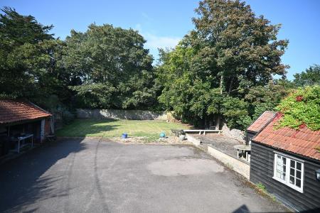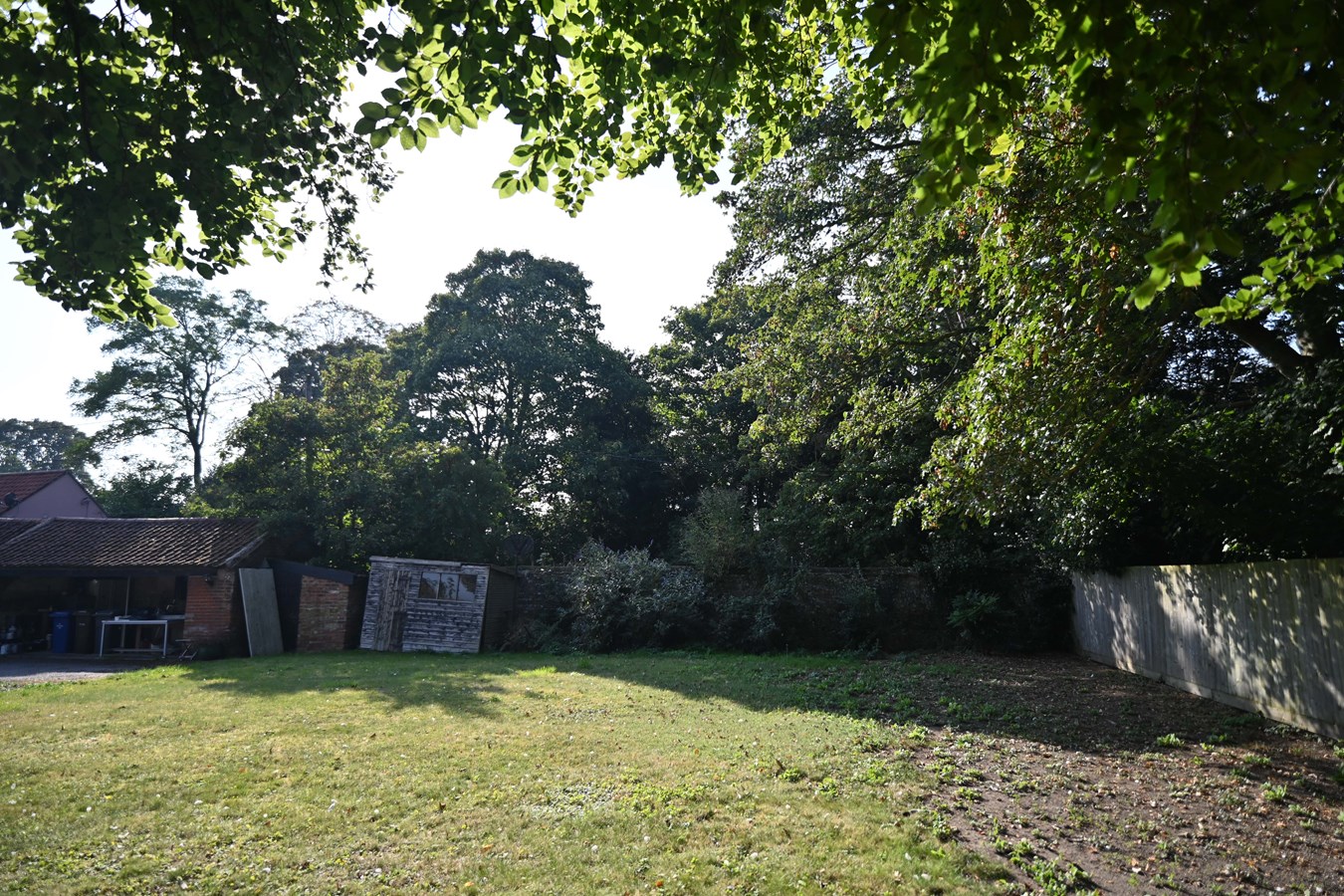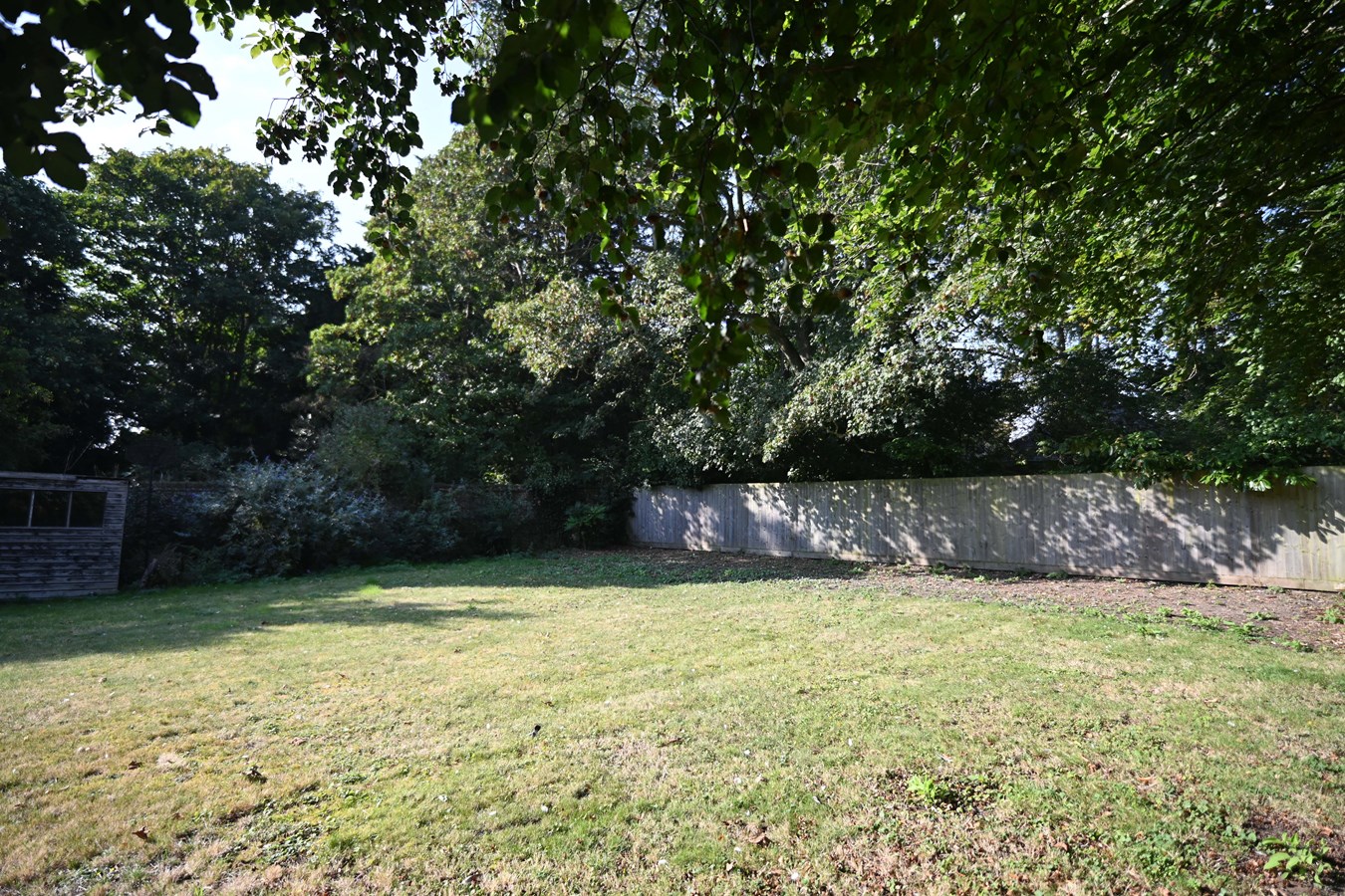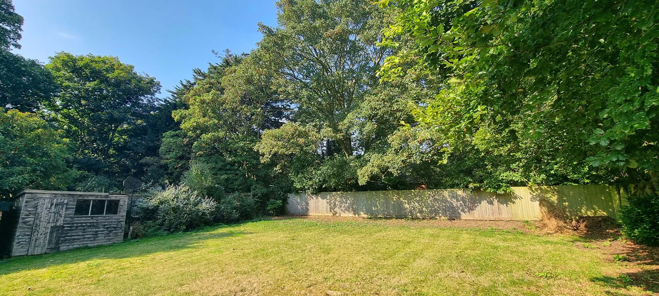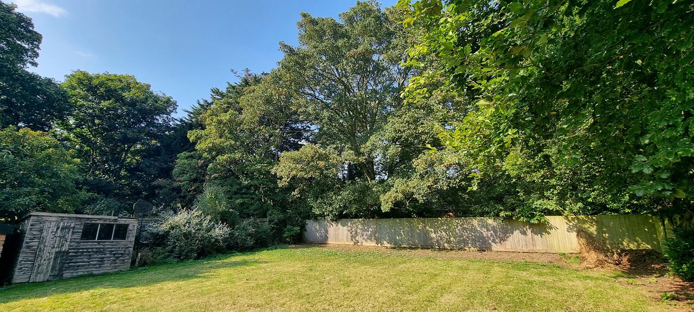 The large enclosed rear garden is mainly laid to lawn with mature trees and shrubs around the perimeter. It is very private. The garden benefits from a paved terrace area which more could be made of + there’s an outbuilding onto this, ideal for BBQ or outdoor kitchen.