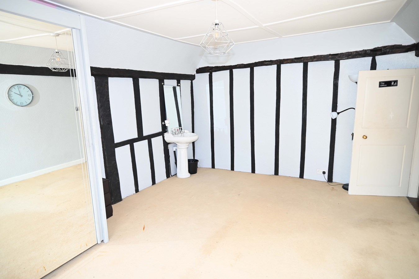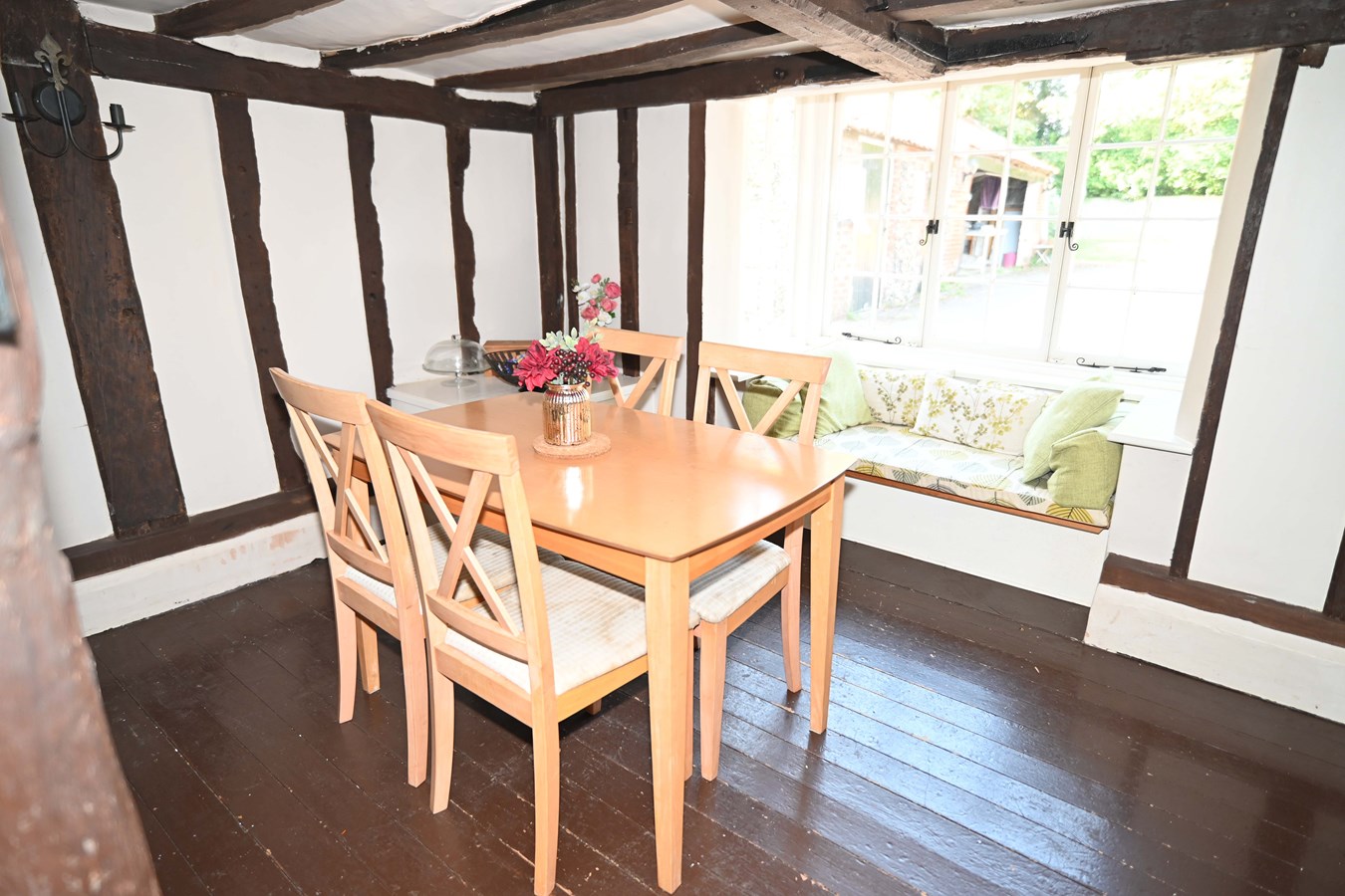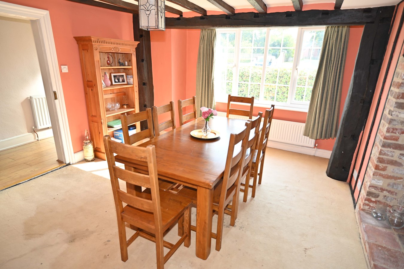 The dining room retains some fabulous period features such as inglenook fireplace which sits central to the room, as well as exposed beams. It’s a lovely light room which would be fabulous for entertaining particularly with the open fire.
