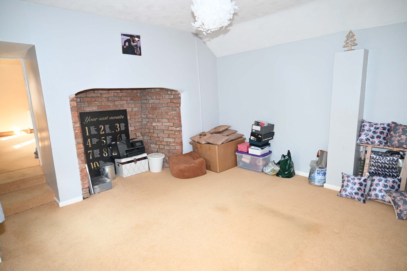 Well-proportioned sitting room with open fire central to the room, making a cosy space for the family to enjoy.
