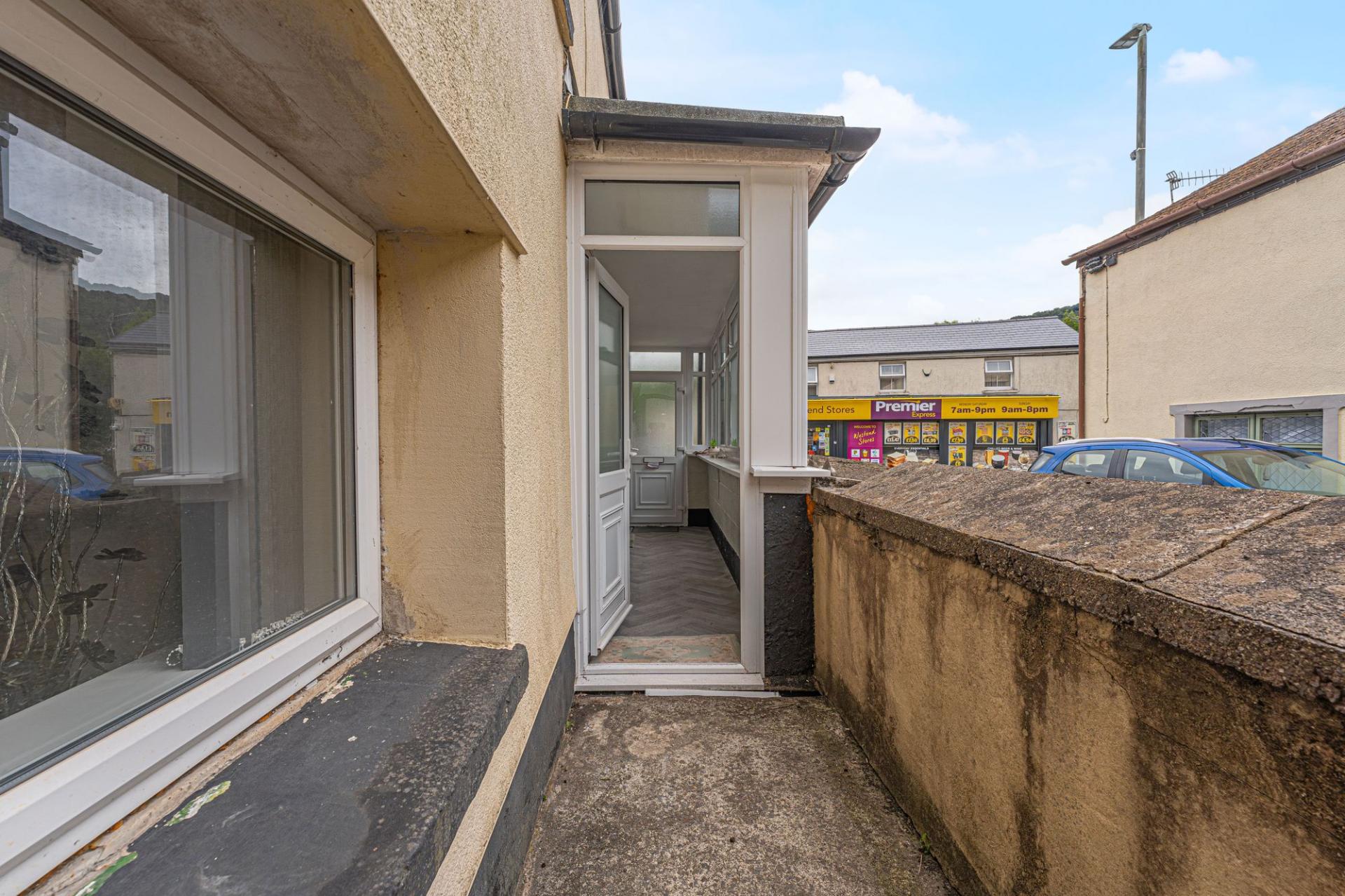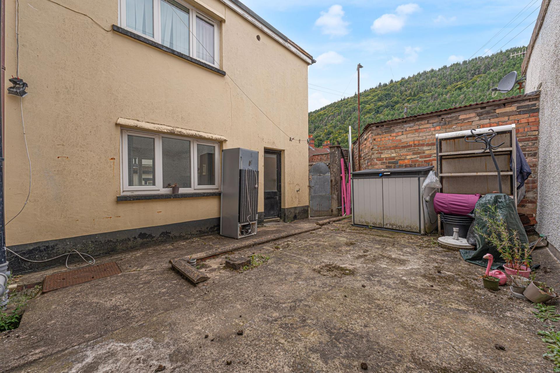The property also encompasses a screened porch and an entry hallway to the front of the house, which connects to the flat above, maintaining right of access into the property. From the porch we can find a snugly enclosed patio space, perfect for tea/coffee, while at the rear of the house there is a well sized patio to highlight a great outdoor space with stunning views of the surrounding hillside. The rear patio also features a gate to the driveway at the side of the house, providing easy parking space for one vehicle.